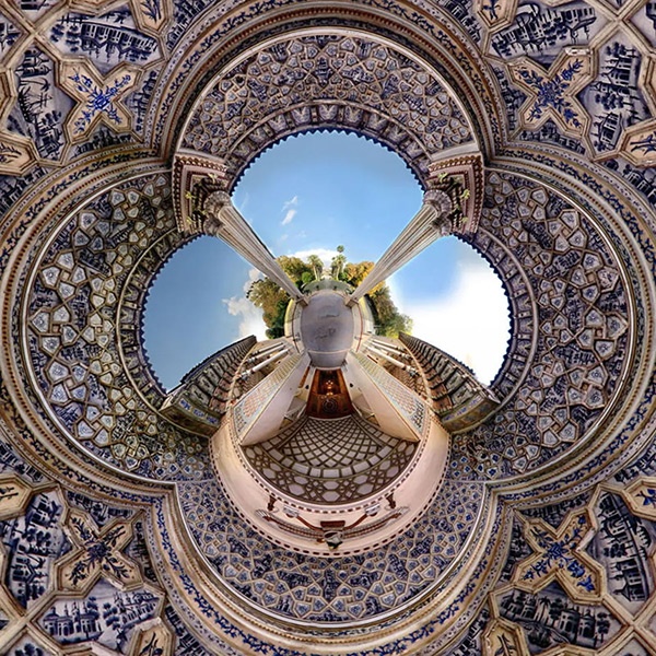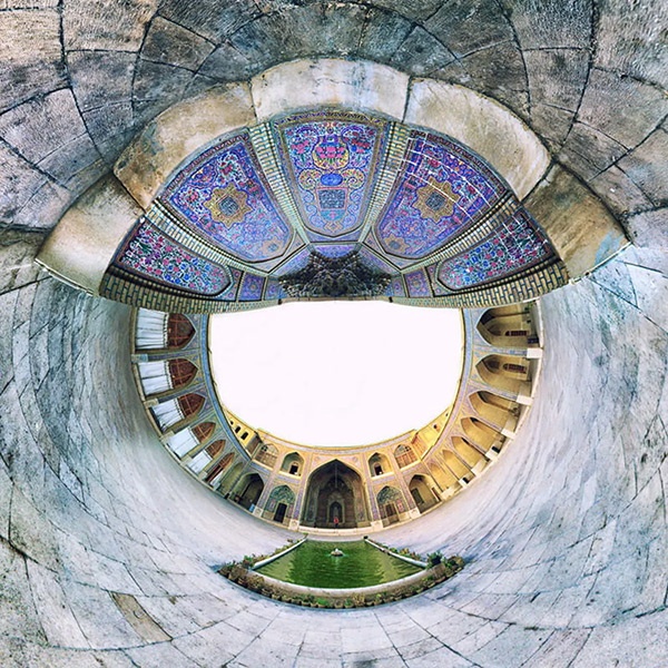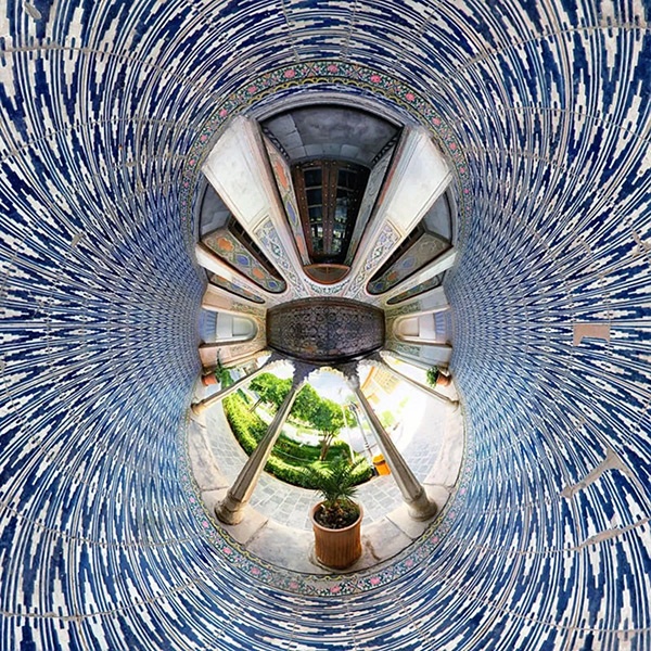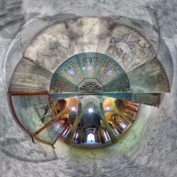 عکاس ایرانی در تصاویر پانورامای ۳۶۰ درجه، معماری شیراز را به شکل همهجانبه به نمایش میگذارد و تجربهای متفاوت از تماشای بافت تاریخی آن فراهم میکند.