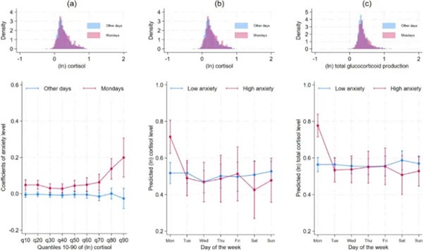 محققان در مطالعهی جدید، به بررسی ارتباط احتمالی میان احساس اضطراب نسبت به روزهای دوشنبه و سلامت جسمانی پرداختند. در این تحقیق، ۳٬۵۱۱ فرد بزرگسال با سن ۵۰ سال و بالاتر که در مطالعهی طولی پیری در انگلستان شرکت داشتند، مورد بررسی قرار گرفتند. شرکتکنندگان میزان اضطراب خود را در روزهای مختلف هفته گزارش کردند و همچنین نمونههایی از موی آنان گرفته و از نظر سطح هورمون استرس کورتیزول تحلیل شد.