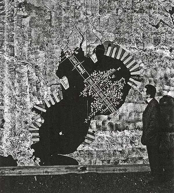 ایده اصلی: ساخت شهری با شبکهای از پلها و آزادراه که ۱۸ کیلومتر روی خلیج گسترش یابد