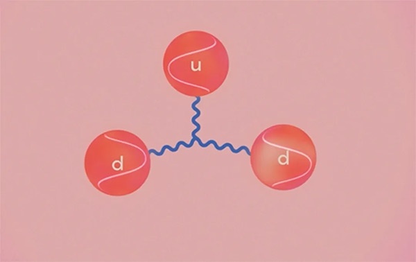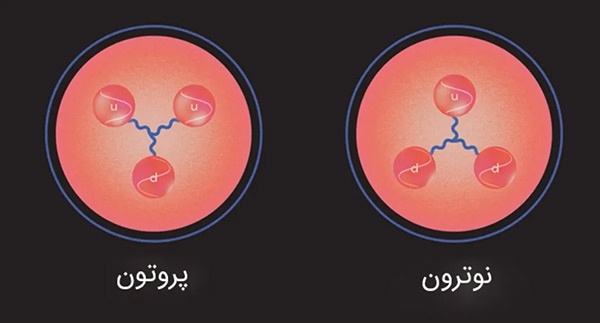 پروتونها و نوترونها، که اجزای اصلی هستهی اتم هستند، هرکدام از سه کوارک ساخته شدهاند. پروتون از دو کوارک بالا و یک کوارک پایین تشکیل شده است، درحالیکه نوترون از دو کوارک پایین و یک کوارک بالا ساخته میشود.