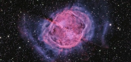 پوشش غبار و گاز اطراف یک کوتوله سفید مرکزی که قطری حدود دو سال نوری دارد، نمونهای از یک سحابی سیاره نما(یکی از آخرین مراحل تکامل یک ستاره شبه خورشید) است. غبار مذکور این چشم کیهانی را قرمز کرده است.