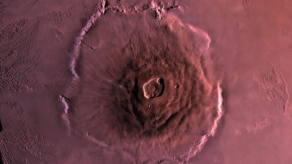 المپوس مانس، بزرگترین آتشفشان شناختهشده در منظومه شمسی است. این تصویر را مدارپیمای وایکینگ ۱ ناسا ثبت کرده است.