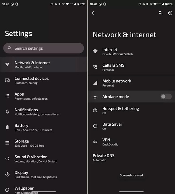 در ادامه گزینه Airplane mode را روی حالت فعال قرار دهید.
