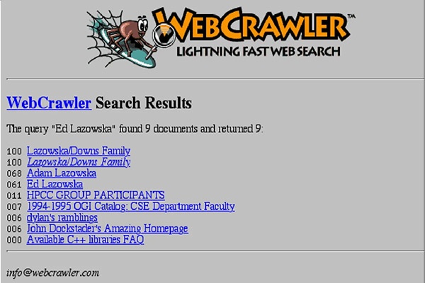 اما موتورهای جستوجوی وب، آن گونه که امروز میشناسیم، با ظهور WebCrawler در سال ۱۹۹۴ آغاز شدند. این سیستم، اولین موتور جستجویی بود که نه فقط عناوین یا URLها بلکه محتوای کامل صفحات وب را نمایهسازی میکرد.