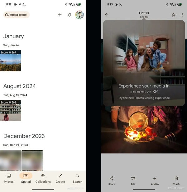 نسخهی جدید Google Photos بهکاربران اجازه خواهد داد تا از طریق گزینهای بهنام Go Immersive تصاویر گالری موبایل را مستقیماً روی هدست XR پخش کنند. هنوز مشخص نیست که آیا این گزینه میتواند عکسهای دوبعدی را به سهبعدی تبدیل کند یا خیر.