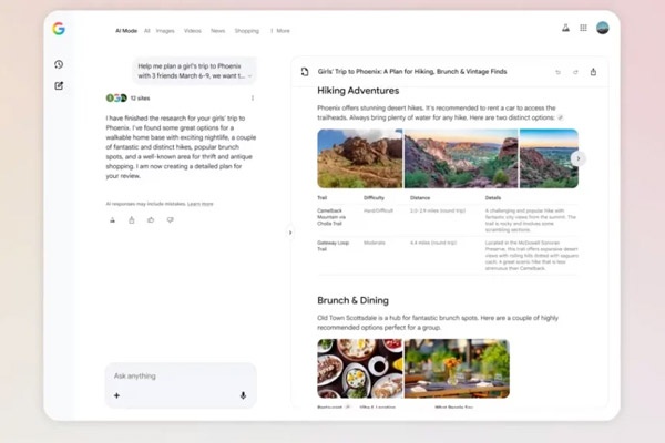 گوگل با معرفی AI Mode اکنون قابلیتی فراهم کرده است که کاربران میتوانند برنامه سفر خود را بهصورت واضح و منظم مشاهده و مدیریت کنند.
