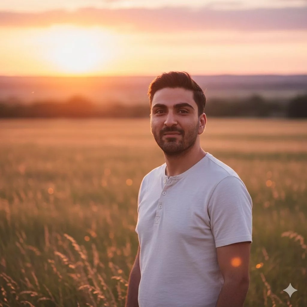 | همه شبکه های اجتماعی | در این تصاویر از نور طبیعی، فضای باز و ترکیببندی احساسی استفاده میشود. نتیجه تصویری آرام، طبیعی و مناسب پروفایلهای مرتبط با موسیقی، سفر یا محتواهای الهامبخش است. | Calm lifestyle portrait in an open field during sunset, warm soft light, gentle breeze, natural expression, cinematic 8K portrait, soft bokeh background |  |