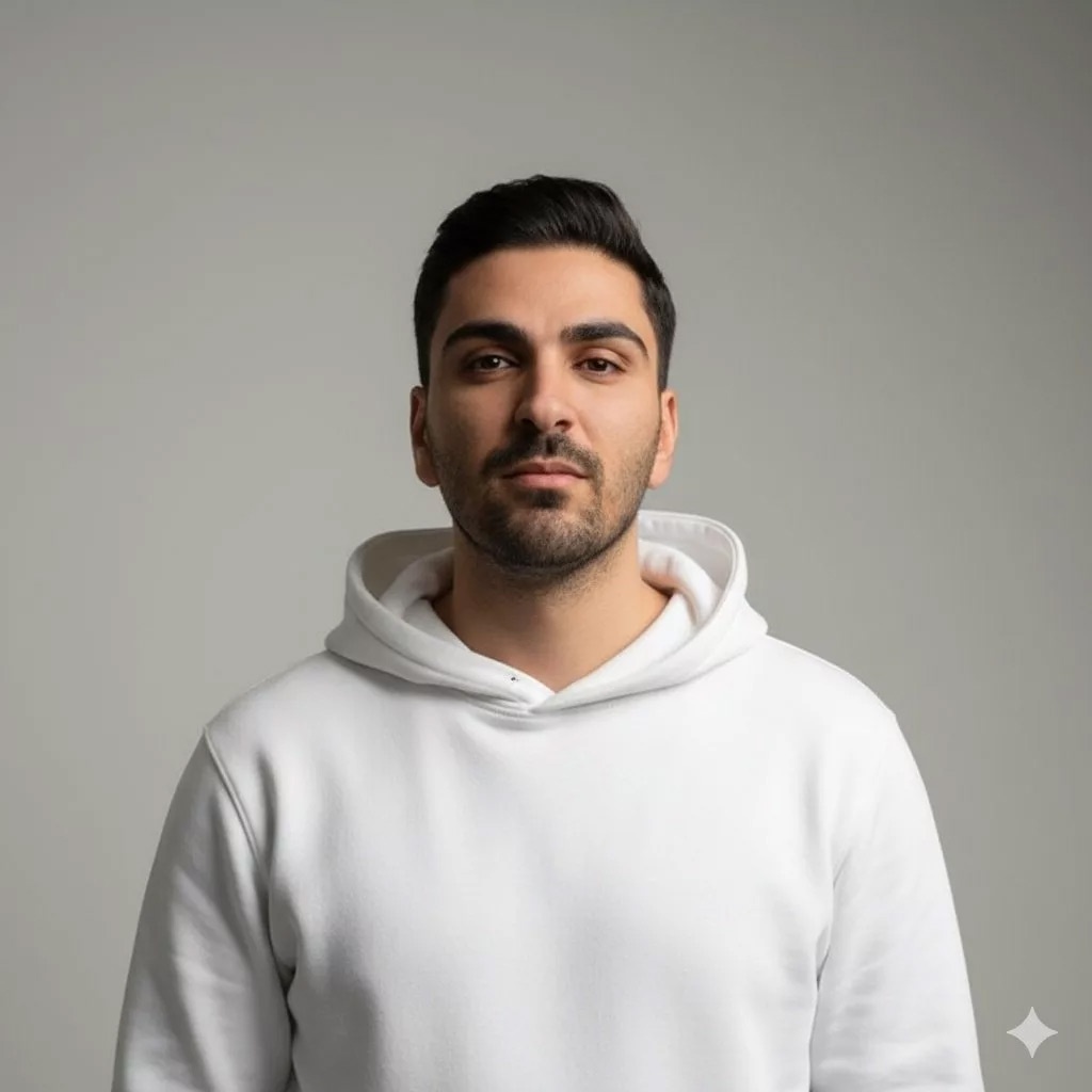 | همه شبکه های اجتماعی | این سبک بر سادگی پوشش، نور استودیویی و حس ریلکس تأکید دارد. خروجی معمولاً مناسب پروفایلهای آموزش، محتوای سبک زندگی و صفحات شخصی است. | Editorial portrait with white sweatshirt hoodie, soft studio lighting, neutral background, realistic 8K portrait, minimal composition |  |