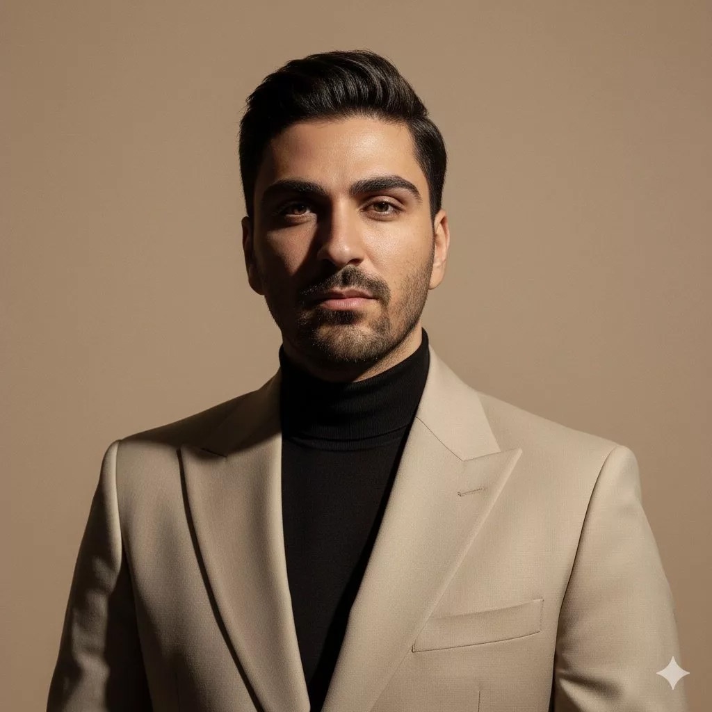 | همه شبکه های اجتماعی | در این سبک، سادگی، مینیمالیسم و حالت چهره متعادل اهمیت ویژهای دارد. هدف تولید یک تصویر حرفهای، قابل اعتماد و مناسب شبکههای کاری و اجتماعی است. | A hyper-realistic male portrait for a professional profile picture, light stubble, dark crewneck sweater, soft gray studio background, calm and confident expression, cinematic lighting, 8K resolution, modern minimal aesthetic |  |
