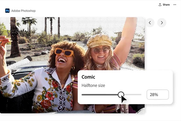 با این قابلیت، کاربران میتوانند تصاویر را آپلود کنند و درخواست تغییراتی مانند تنظیم روشنایی، کنتراست یا اعمال افکتهای مختلف را داشته باشند. اگر نتیجه رضایتبخش نباشد، میتوانند از اسلایدرها برای تنظیم دقیقتر استفاده کنند یا با گزینه «Open in Photoshop» تغییرات پیشرفتهتر را در خود نرمافزار ادامه دهند. Adobe Express برای طراحیها چند گزینه ارائه میکند و امکان اعمال تغییرات دلخواه و افزودن انیمیشن را فراهم میآورد.