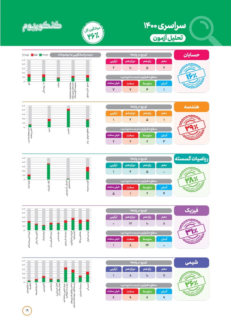 - برای اولین بار در کشور ارائه آمار مستند از درصد پاسخگویی داوطلبان به تست های هر مبحث