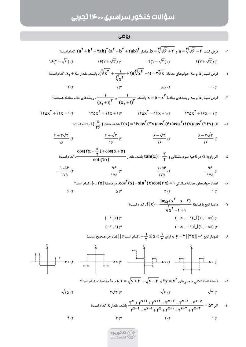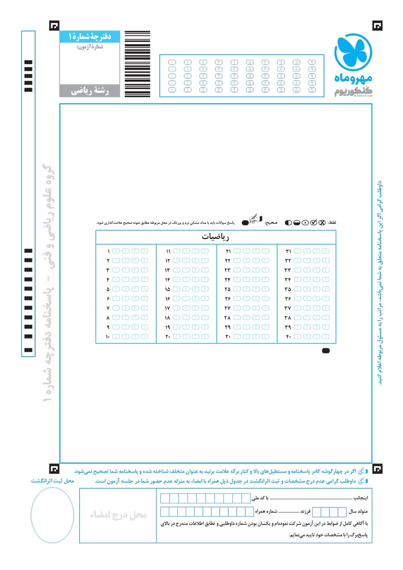 - دفترچه های کنکور و پاسخ برگ های تفکیکی + آزمون تالیفی