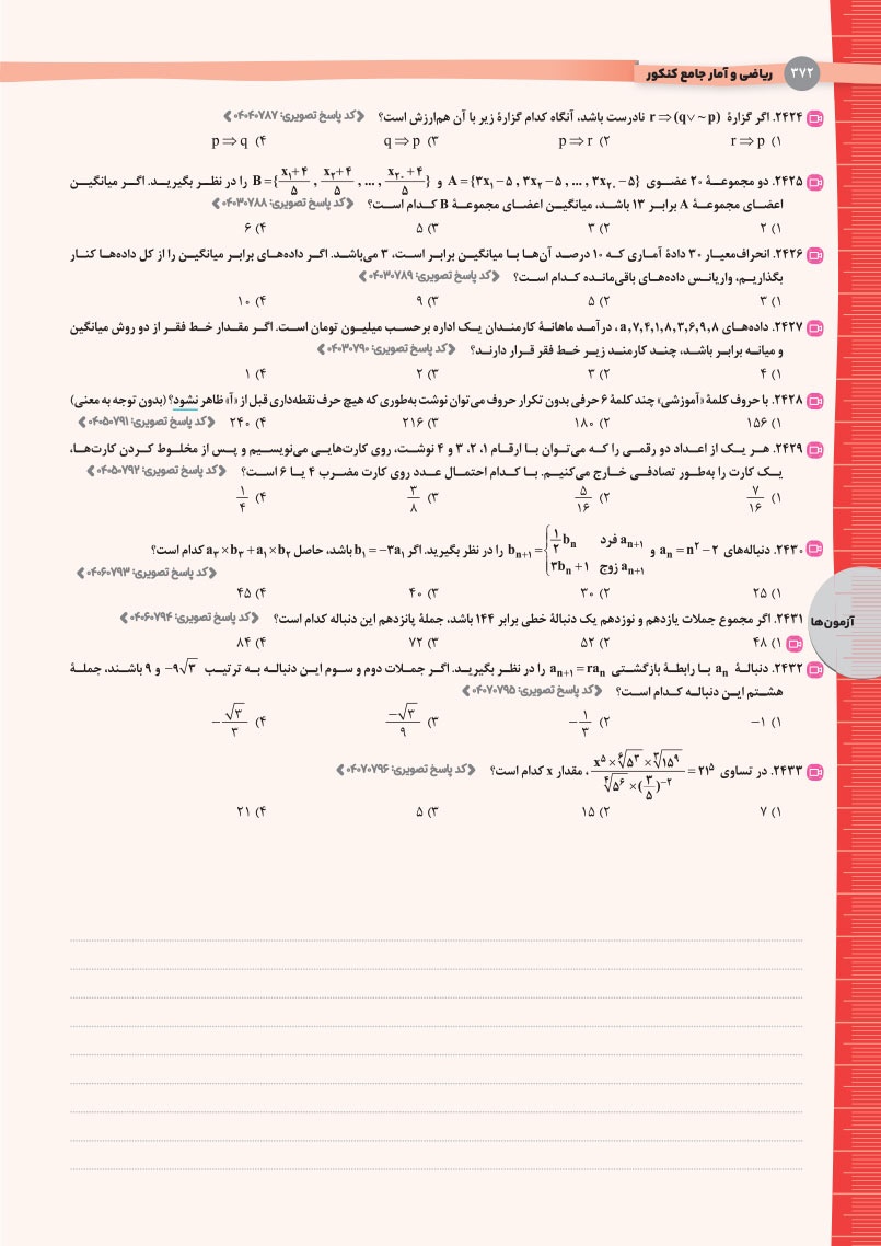 نمونه صفحات ریاضی و آمار انسانی واقعا جامع کنکور
