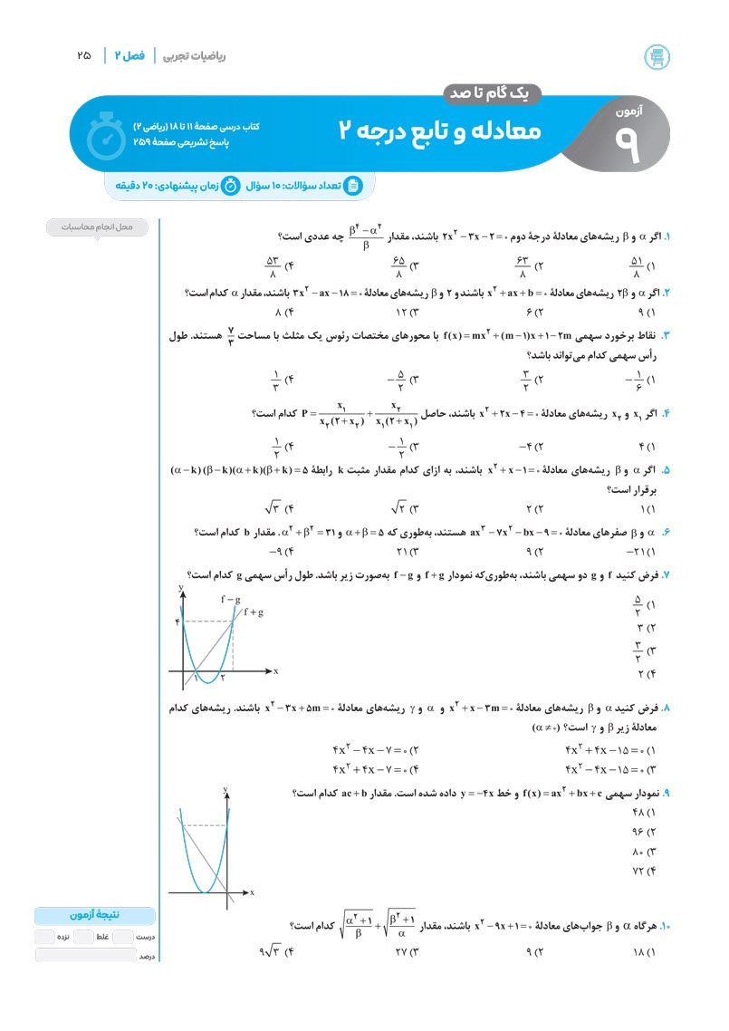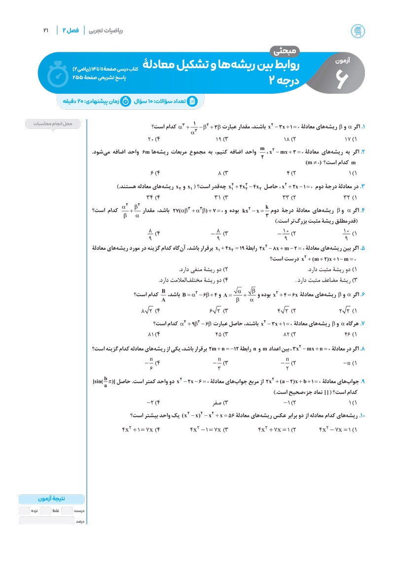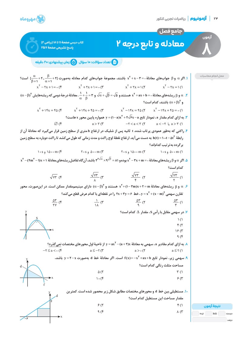 دانلود نمونه صفحات آزمونیم ریاضیات تجربی