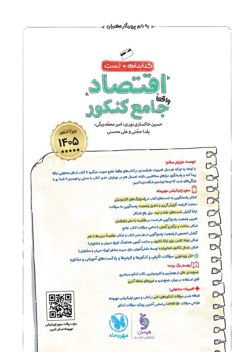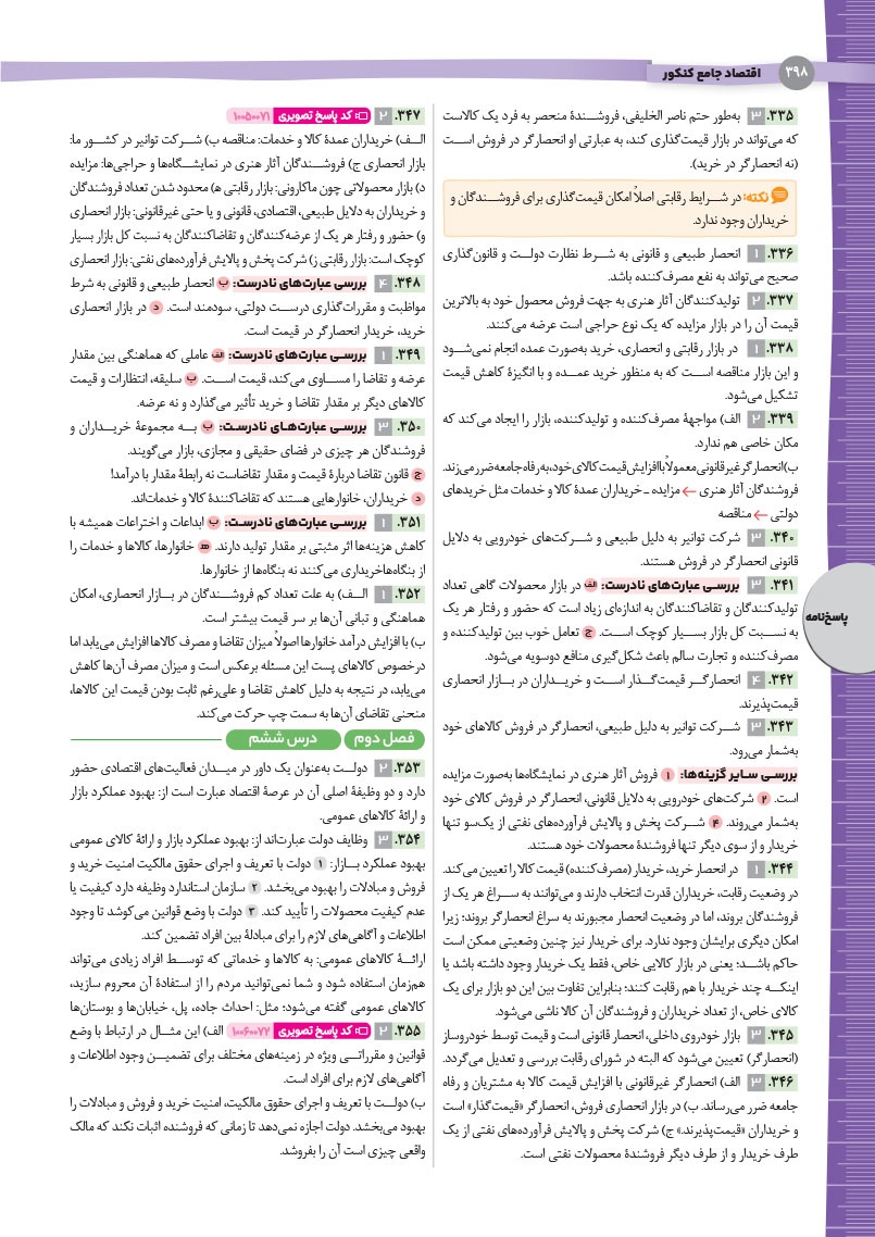 - ارائه درسنامه به سبک کتابنامه برای موشکافی کامل مطالب کتاب درسی - بررسی تمام مطالب مهم درس در کنار صفحات کتاب در قسمت کتابنامه - طرح بیش از 1300 تست متن و مسئله محور، کاملا مطابق با سبک کنکور اخیر - استفاده از انواع کادرهای آموزشی و ارائه نکات تستی برای تسلط بیشتر مطالب کتاب درسی - ارائه 22 آزمون درس به درس و جامع مطابق رویکرد جدید کنکور پاسخنامه واقعا تشریحی و پرنکته