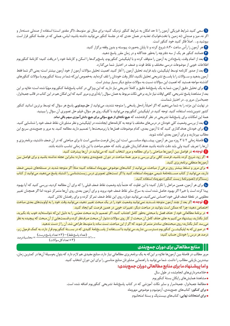 - پاسخ های ویدئویی برای تک تک تست ها توسط برجسته ترین استادان کنکور