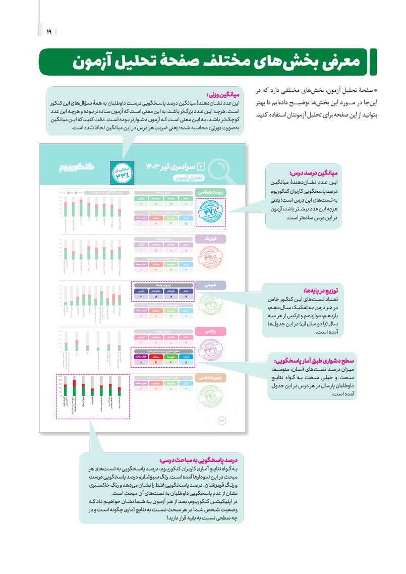 - برای اولین بار در کشور ارائه آمار مستند از درصد پاسخگویی داوطلبان به تست های هر مبحث