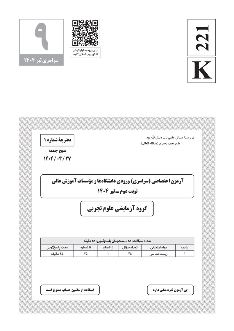 سلام کنکوریوم تجربی کنکور ۱۴۰۳ کی موجود میشه؟