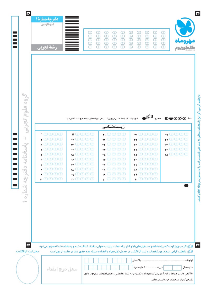 - دفترچه های کنکور و پاسخ برگ های تفکیکی + آزمون های تالیفی