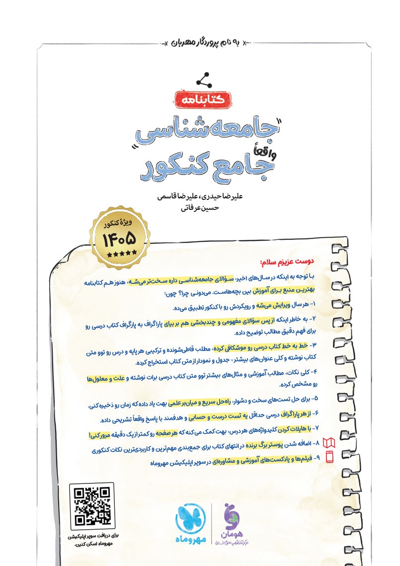 دوست عزیز این کتاب مناسب کنکور 1405 میباشد و برای کنکور 1406 قطعا دارای تغییرات و ویرایشهایی میباشد.