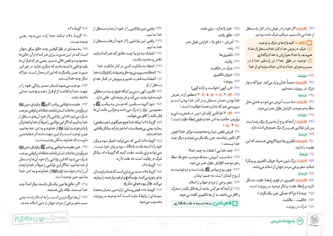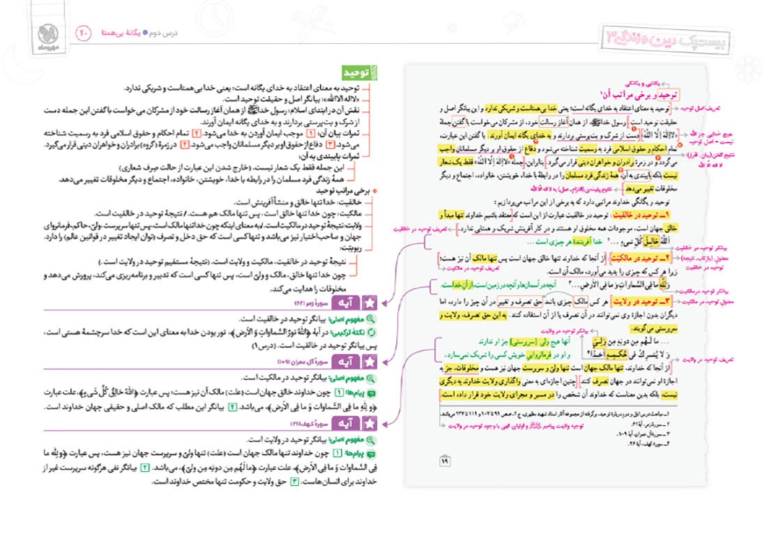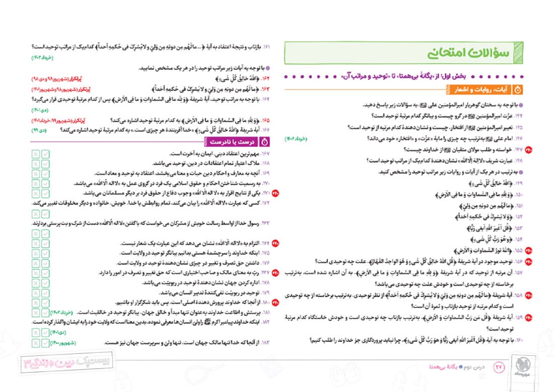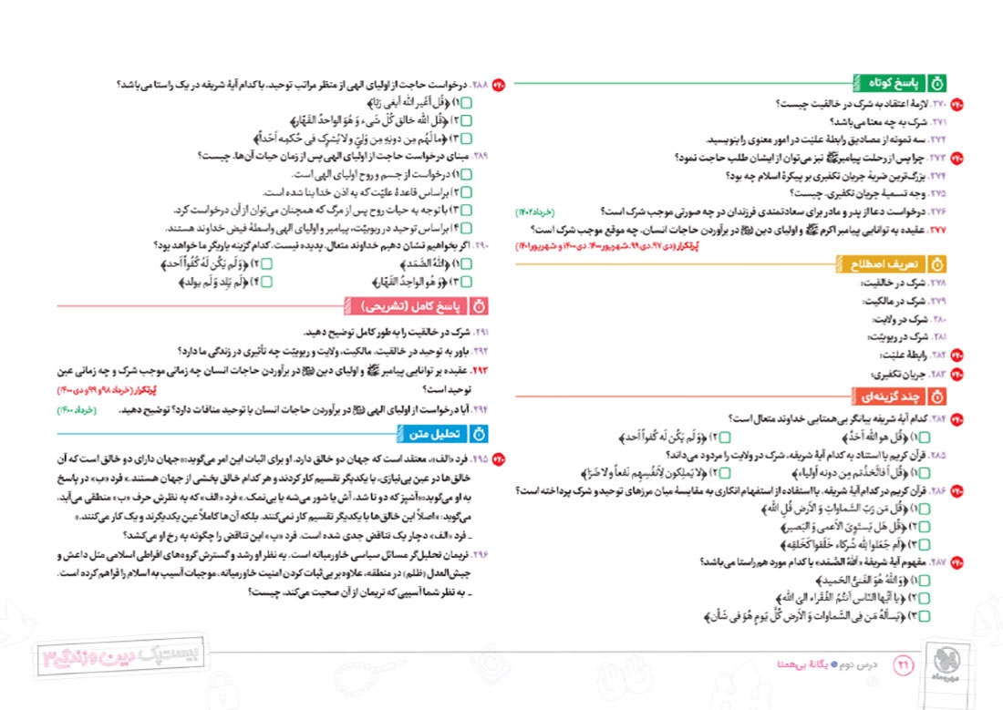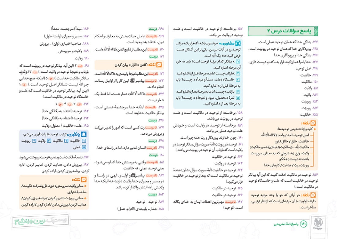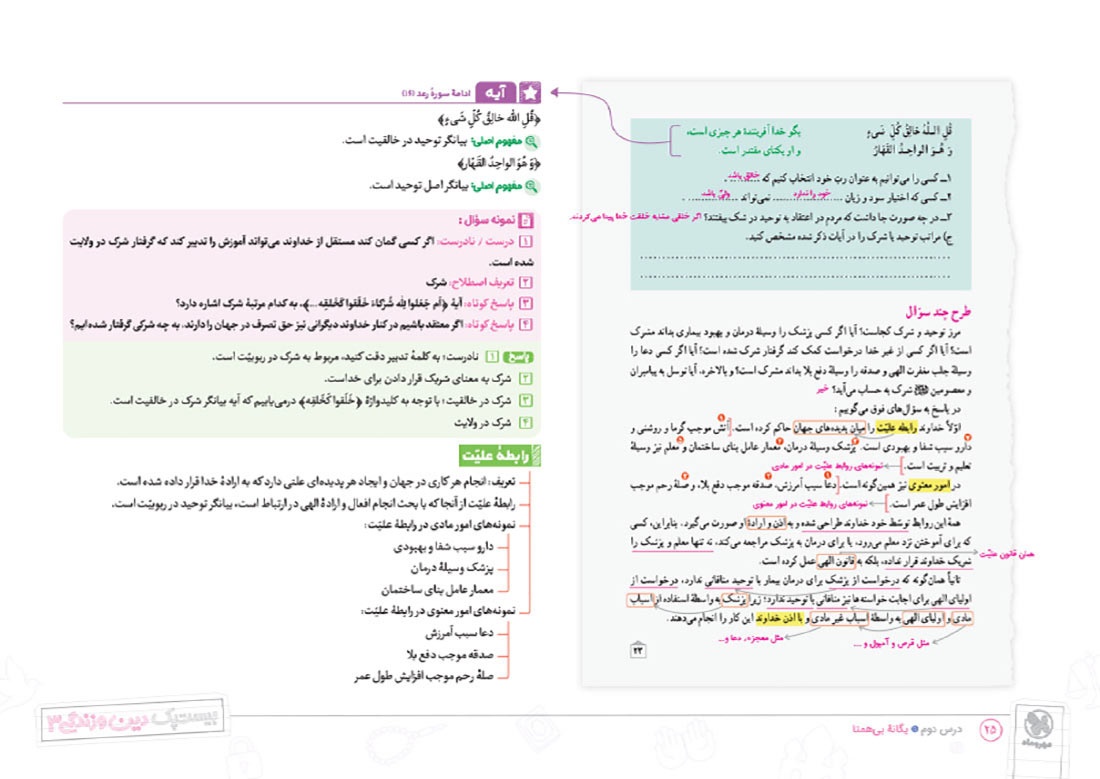 - پوشش نکات تمامی آیات، احادیث و اشعار کتاب درسی