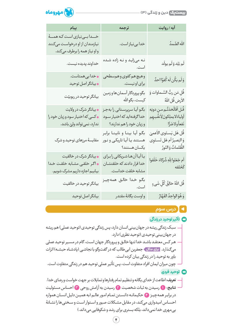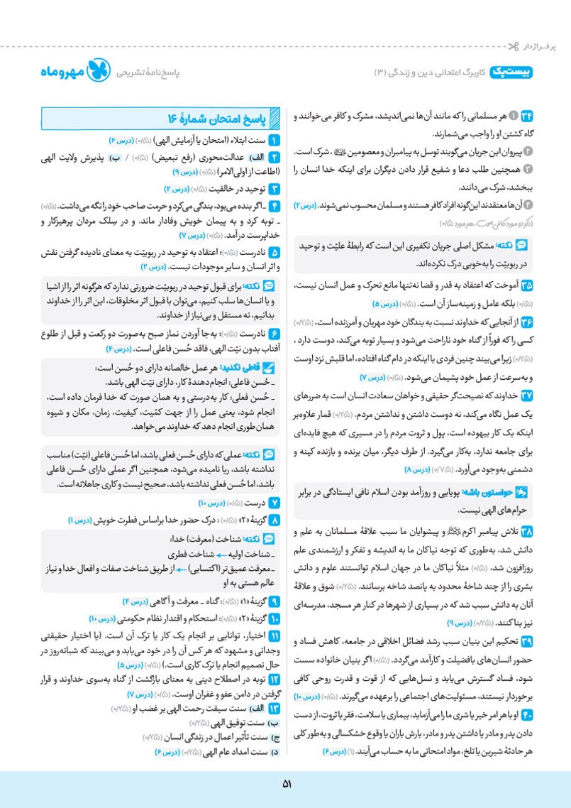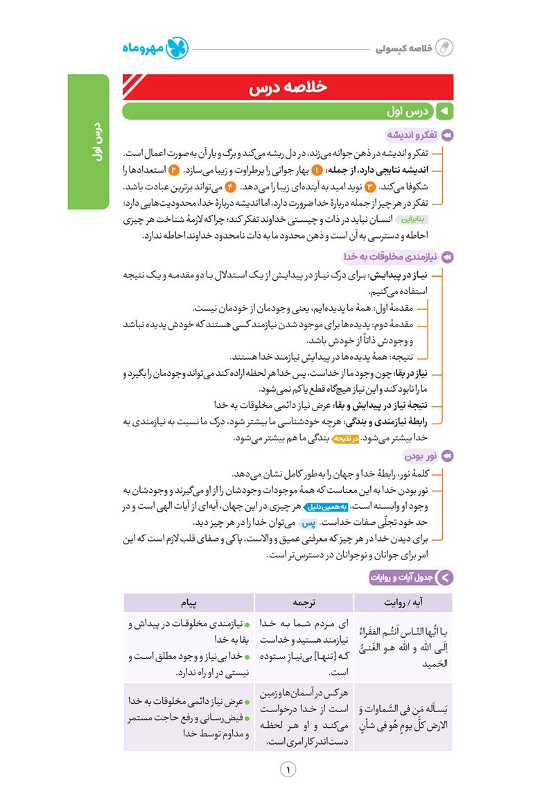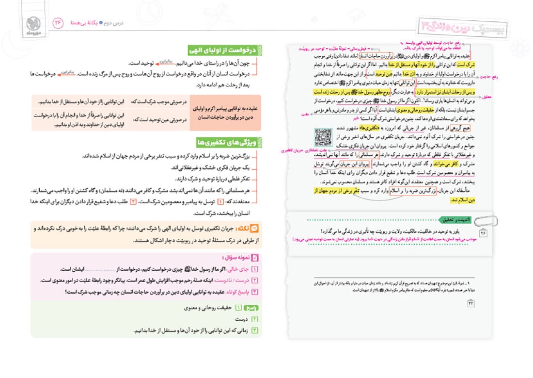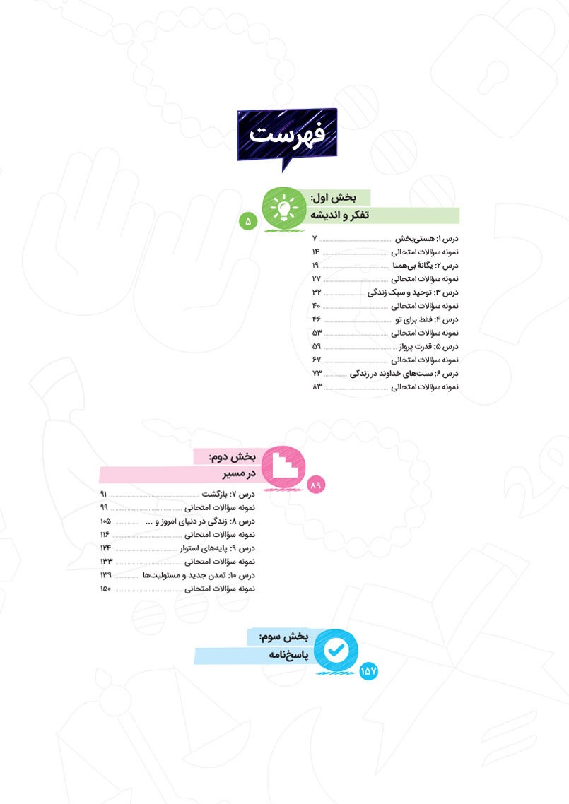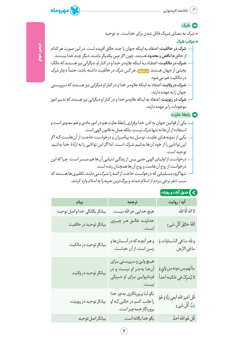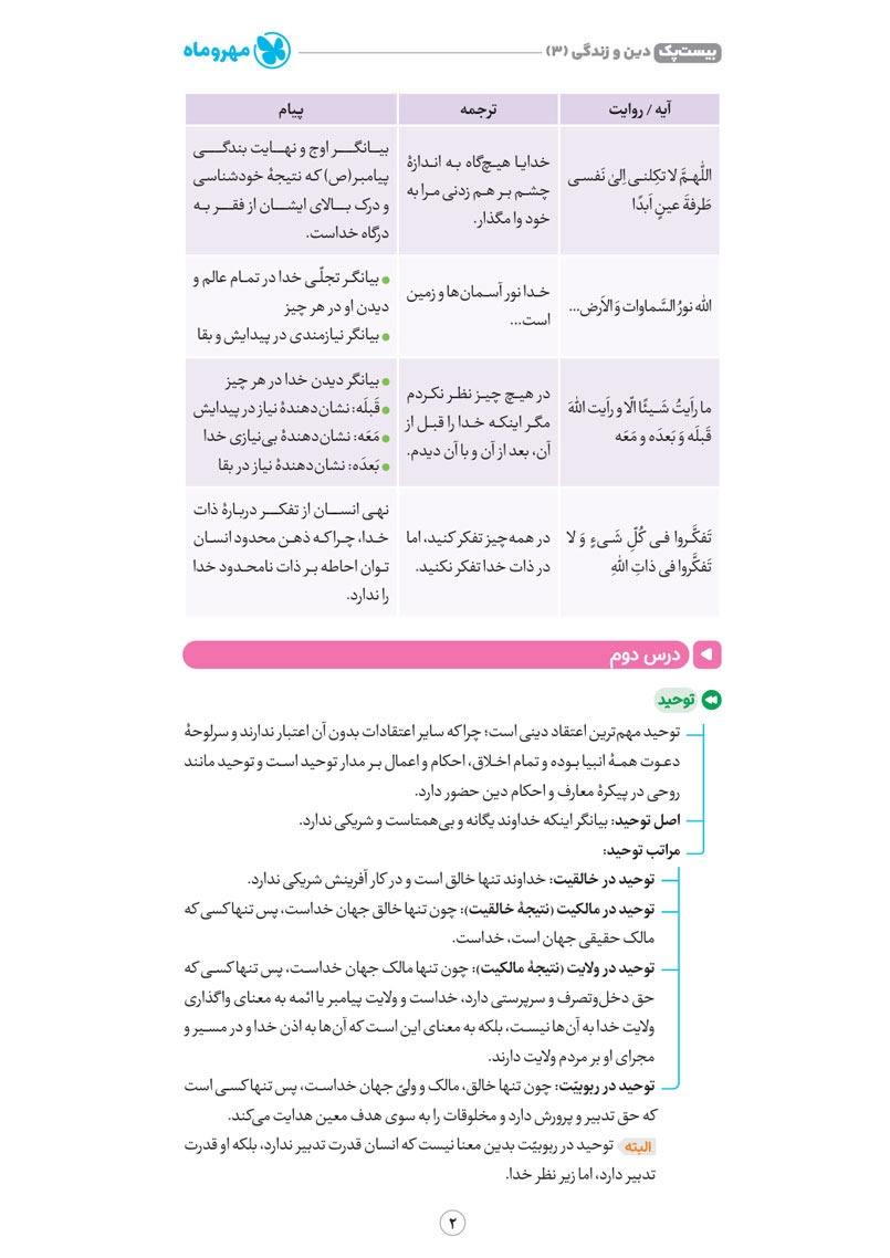 - پوشش نکات تمامی آیات، احادیث و اشعار کتاب درسی