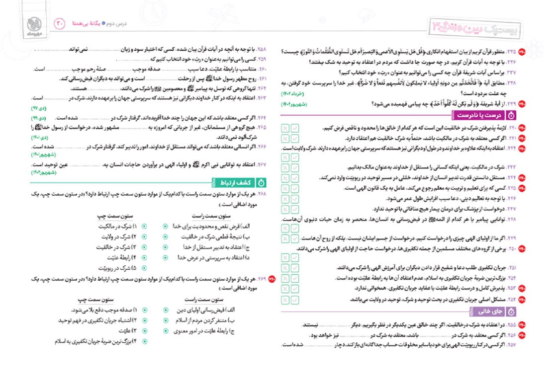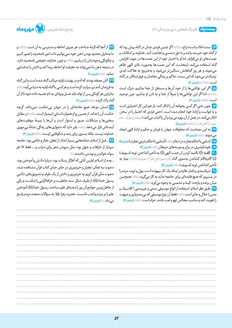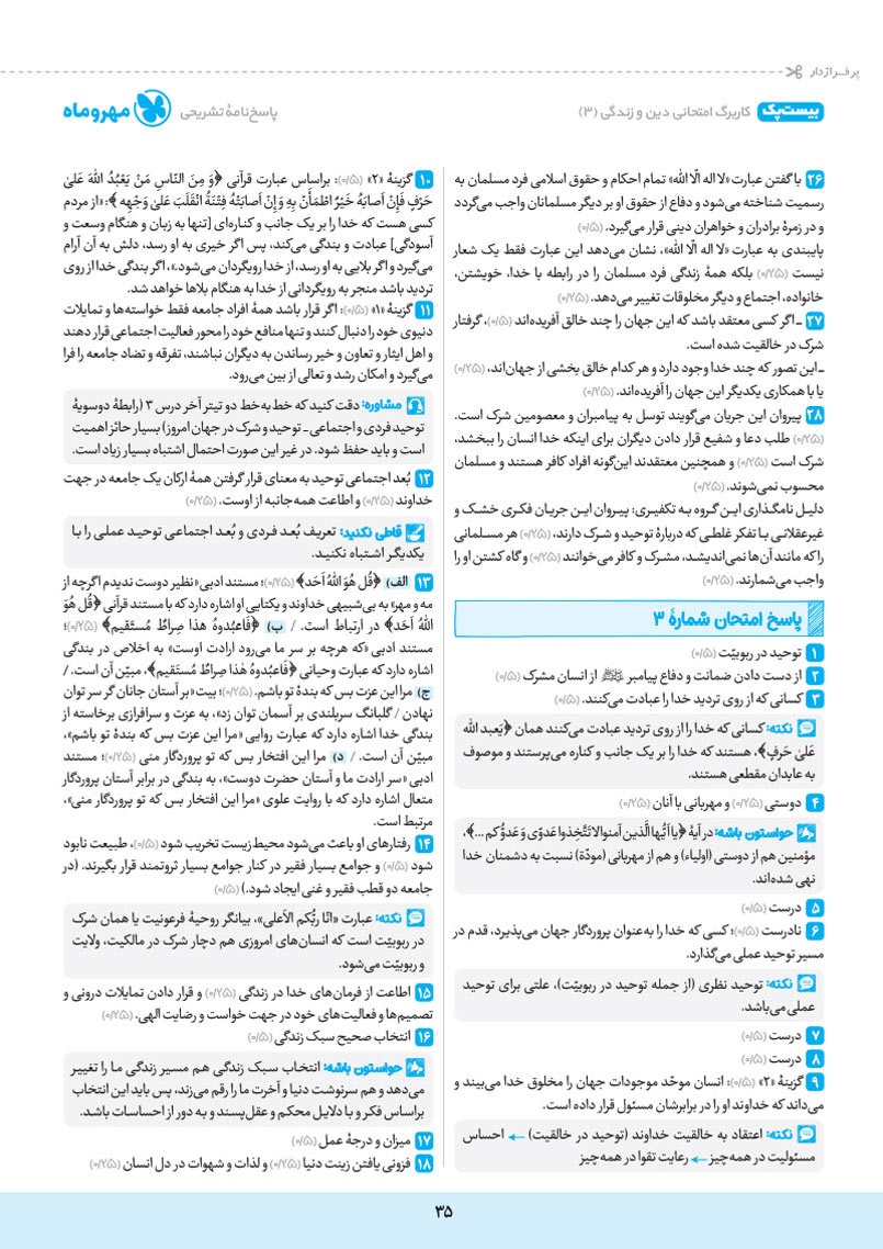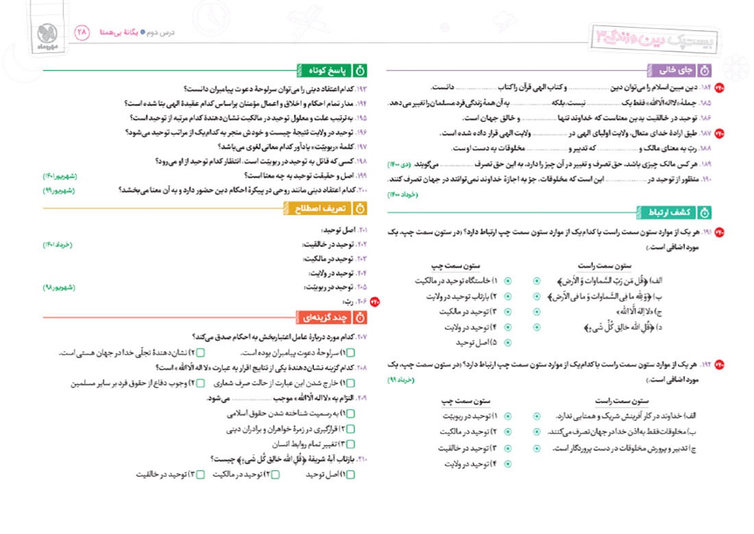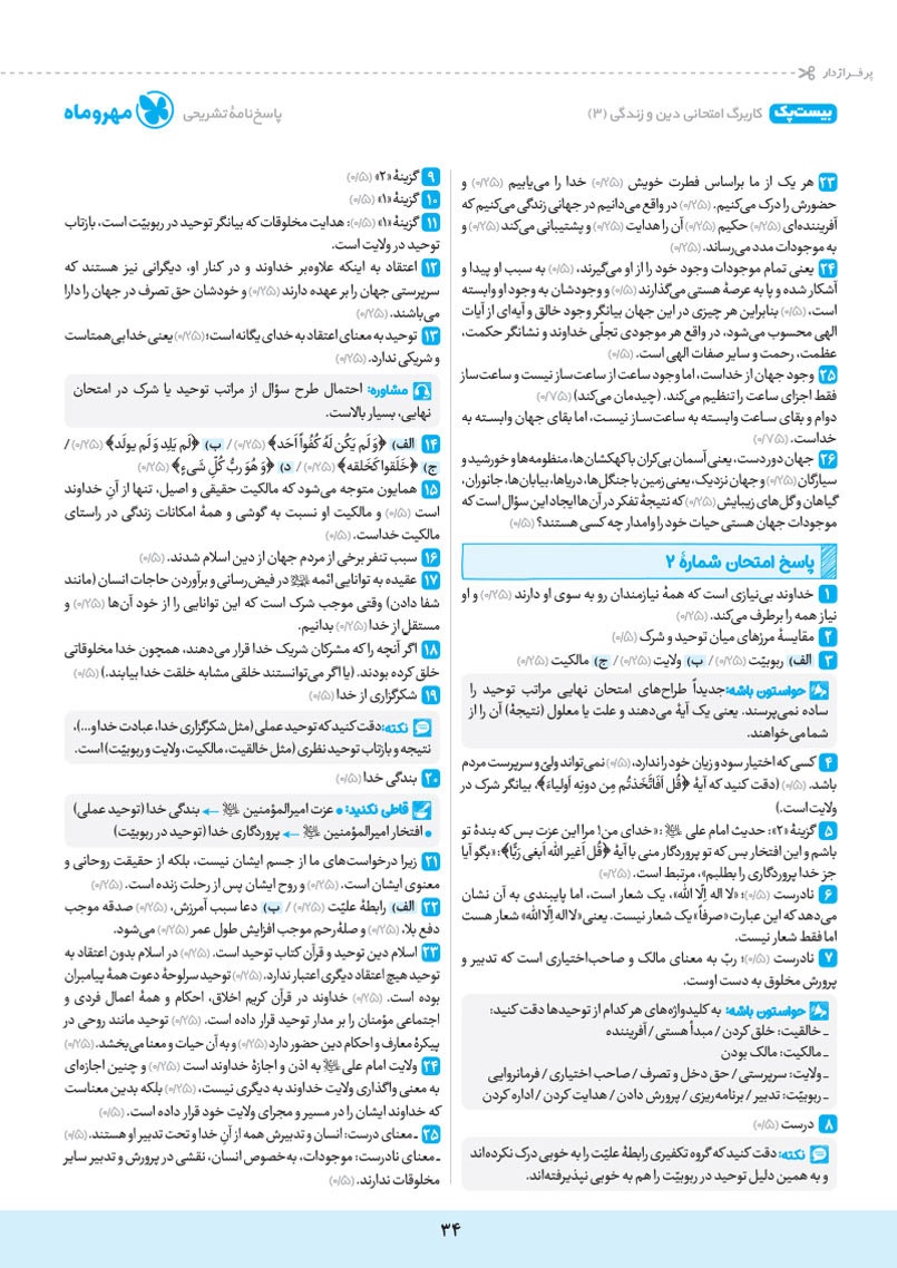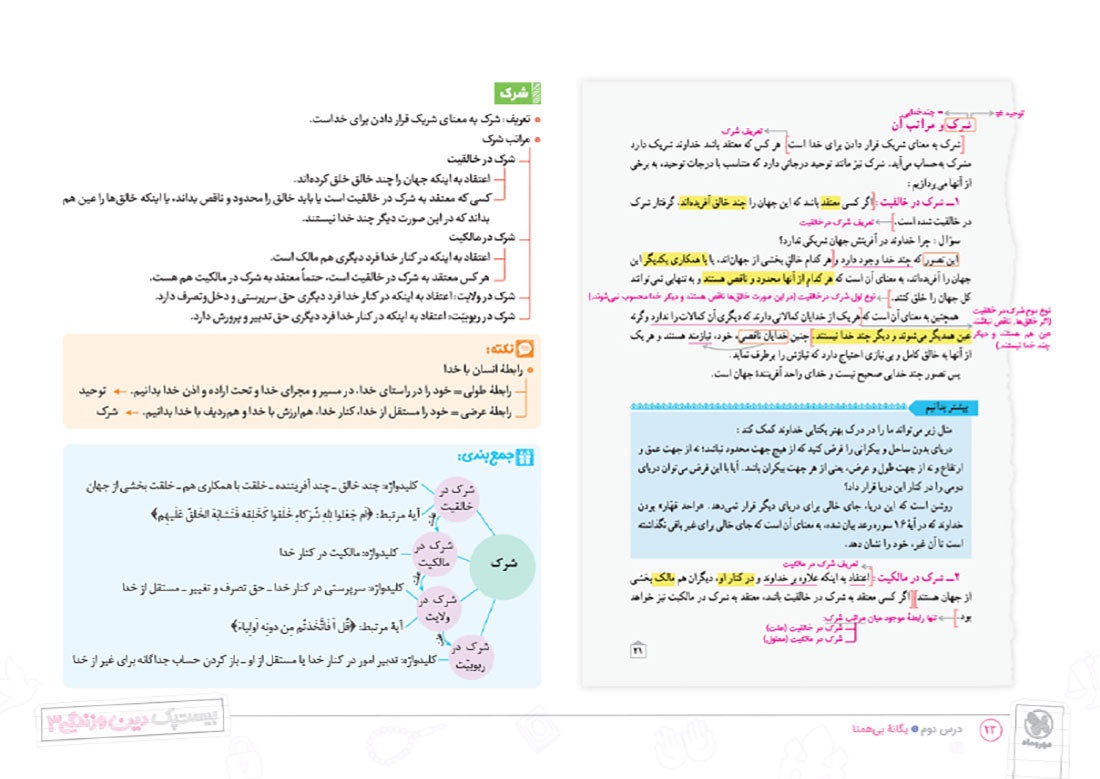 - پوشش نکات تمامی آیات، احادیث و اشعار کتاب درسی
