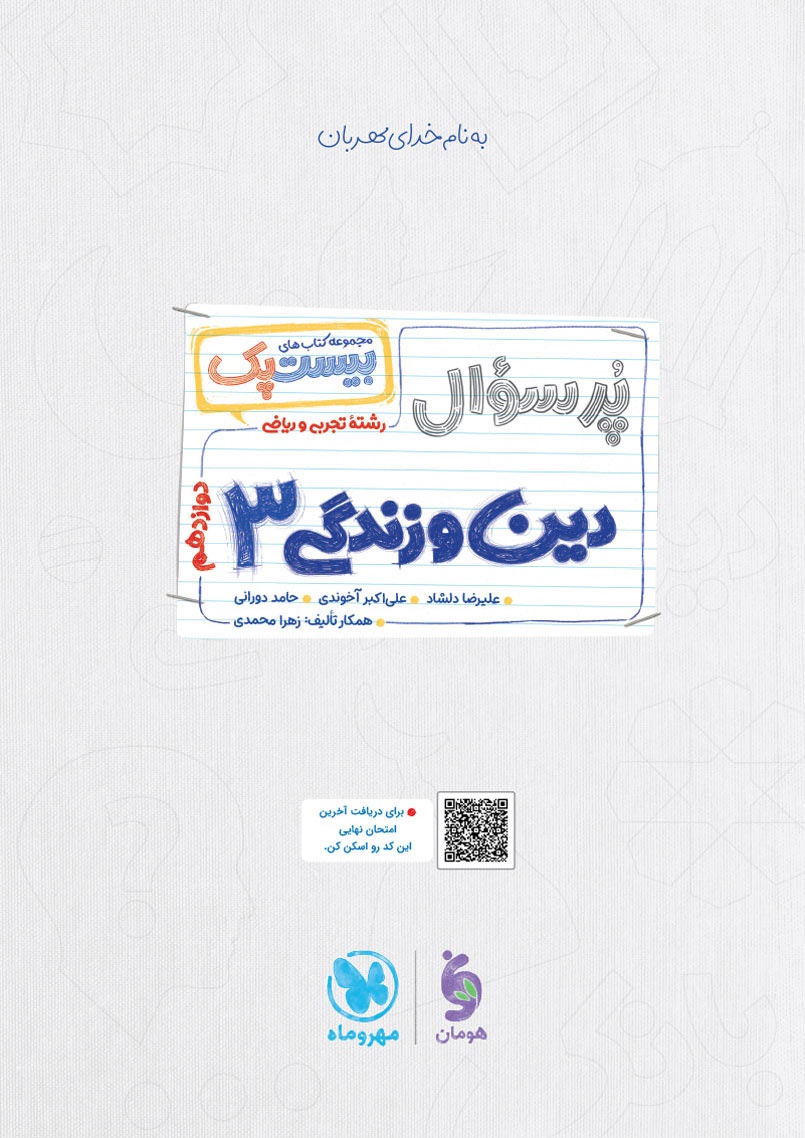 بنابراین پیشنهاد میکنیم پس از مطالعه هر درس از کتاب پرسوال، امتحان همان درس را جدا کنید و در شرایط مشابه نهایی از خودتان امتحان بگیرید و سپس با توجه به بارم بندی هر سوال در پاسخ نامه، برگه خود را تصحیح و تحلیل کنید.
