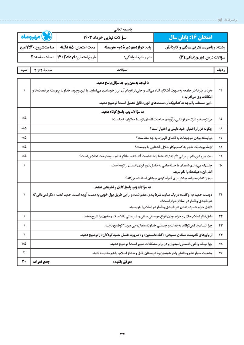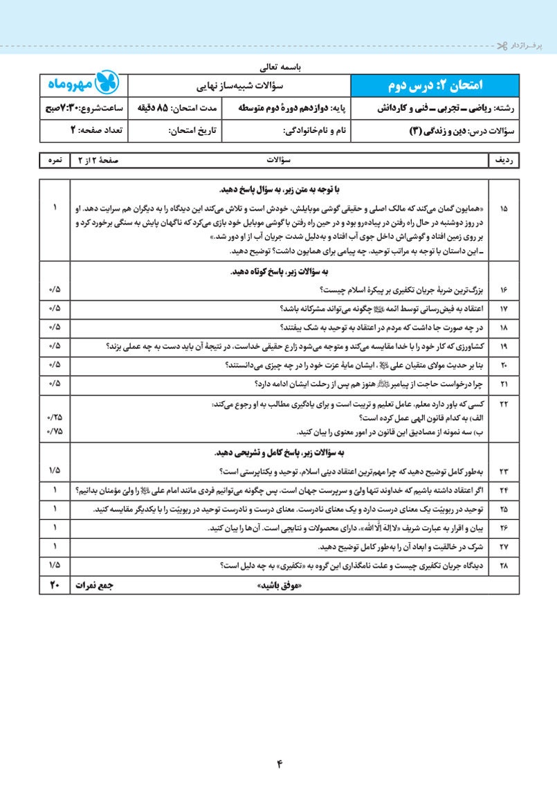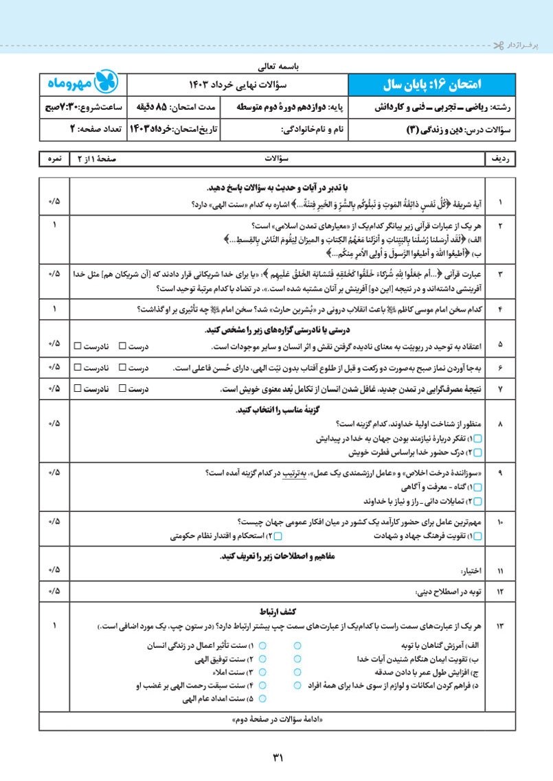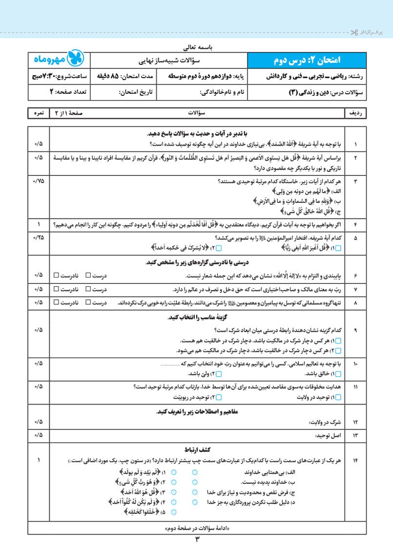 در نهایت با حل سوالات امتحان های نهایی اخیر به آمادگی کامل خواهید رسید.