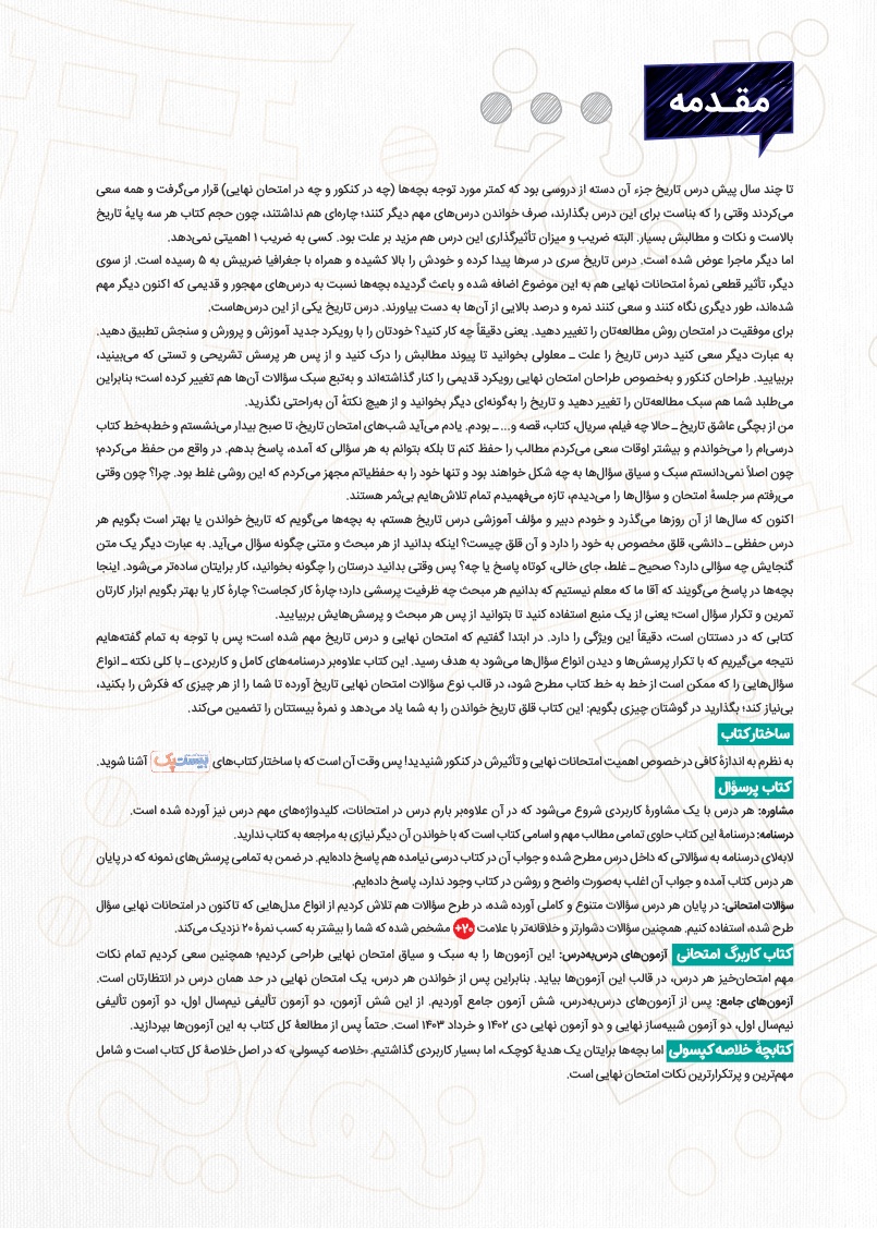 ویژگی های کتاب پرسوال:- ارائه مشاوره در خصوص روش مطالعه به سبک امتحان نهایی