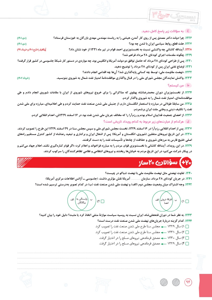 محتویات بسته ۲۰ پک:- کتاب پرسوال