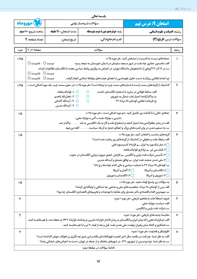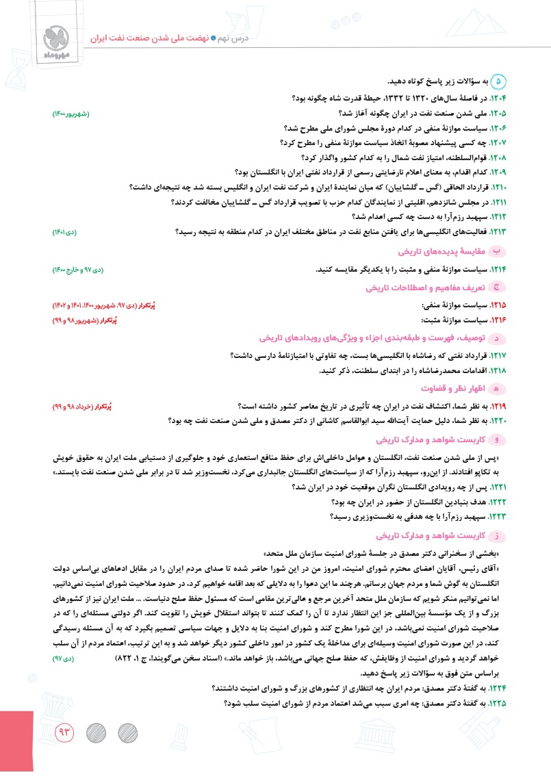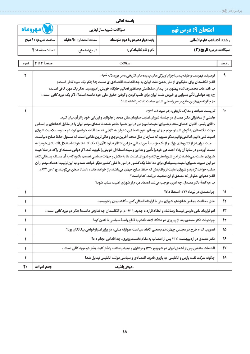 - کاملترین مرجع سوال امتحانی و نهایی به همراه کلی نکات آموزشی