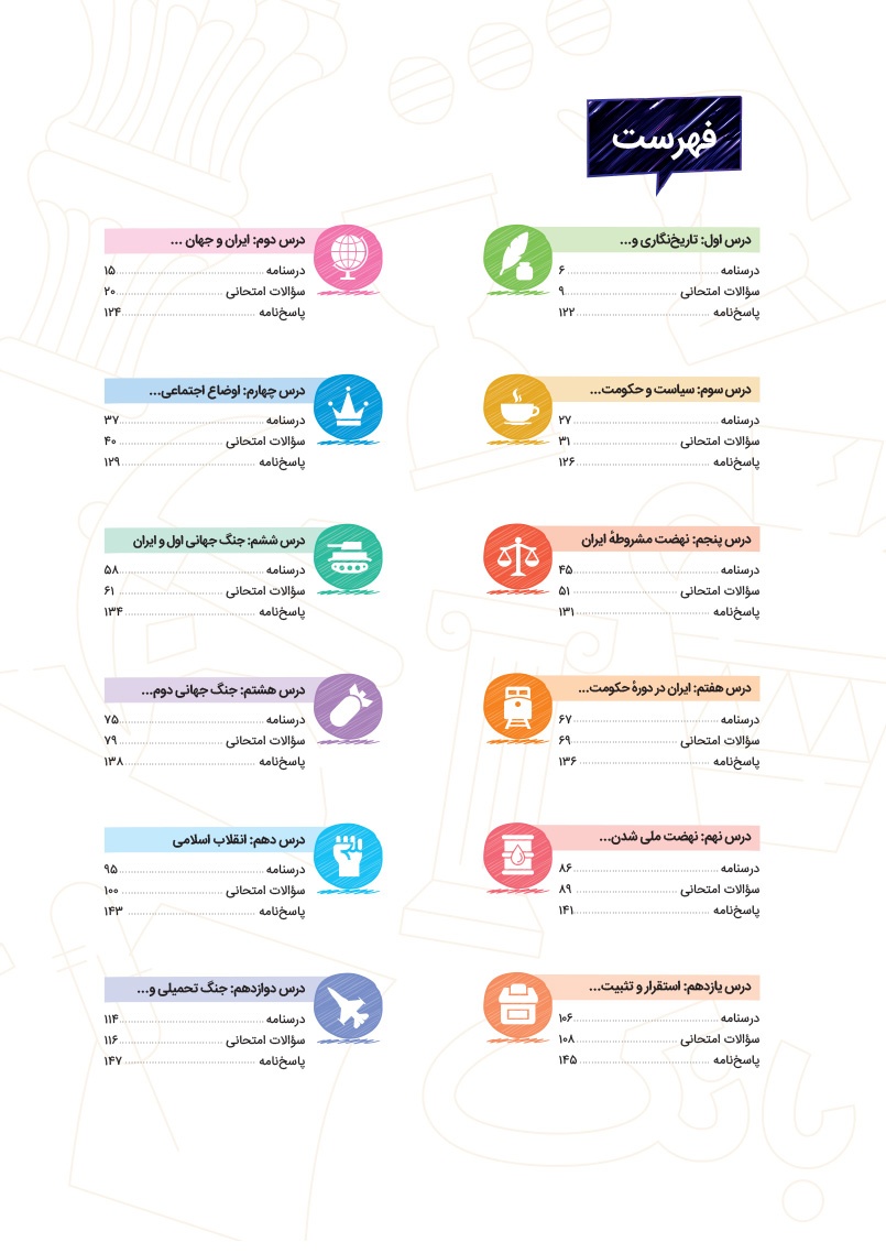 بنابراین پیشنهاد میکنیم پس از مطالعه هر درس از کتاب پرسوال، امتحان همان درس ها را جدا کنید و در شرایط مشابه نهایی از خودتان امتحان بگیرید و سپس با توجه به بارم بندی هر سوال در پاسخ نامه، برگه خود را تصحیح و تحلیل کنید.