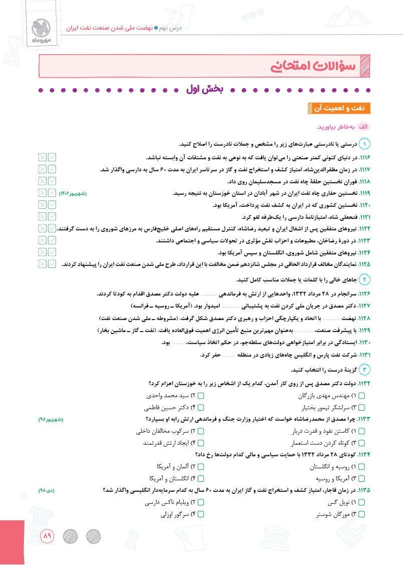 سوالات امتحان های این بسته، براساس آخرین رویکردهای امتحانات نهایی و کاملا مشابه برگه های امتحانی و با رعایت جدیدترین بارم بندی طراحی شده است.