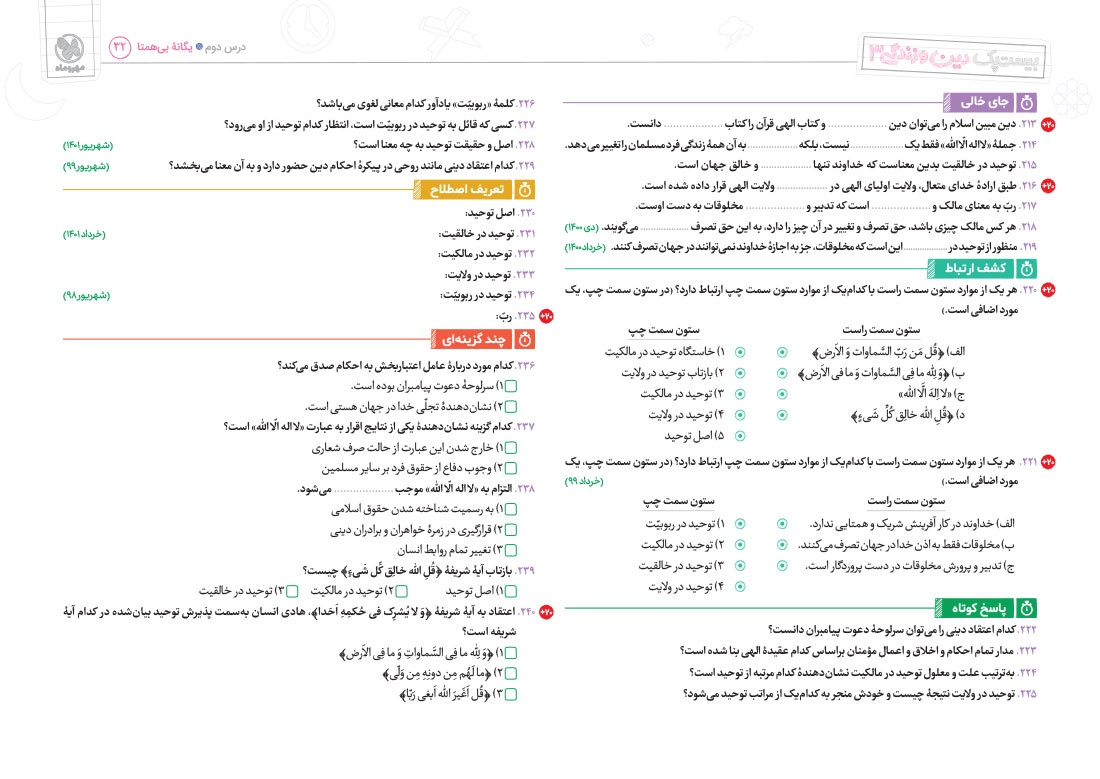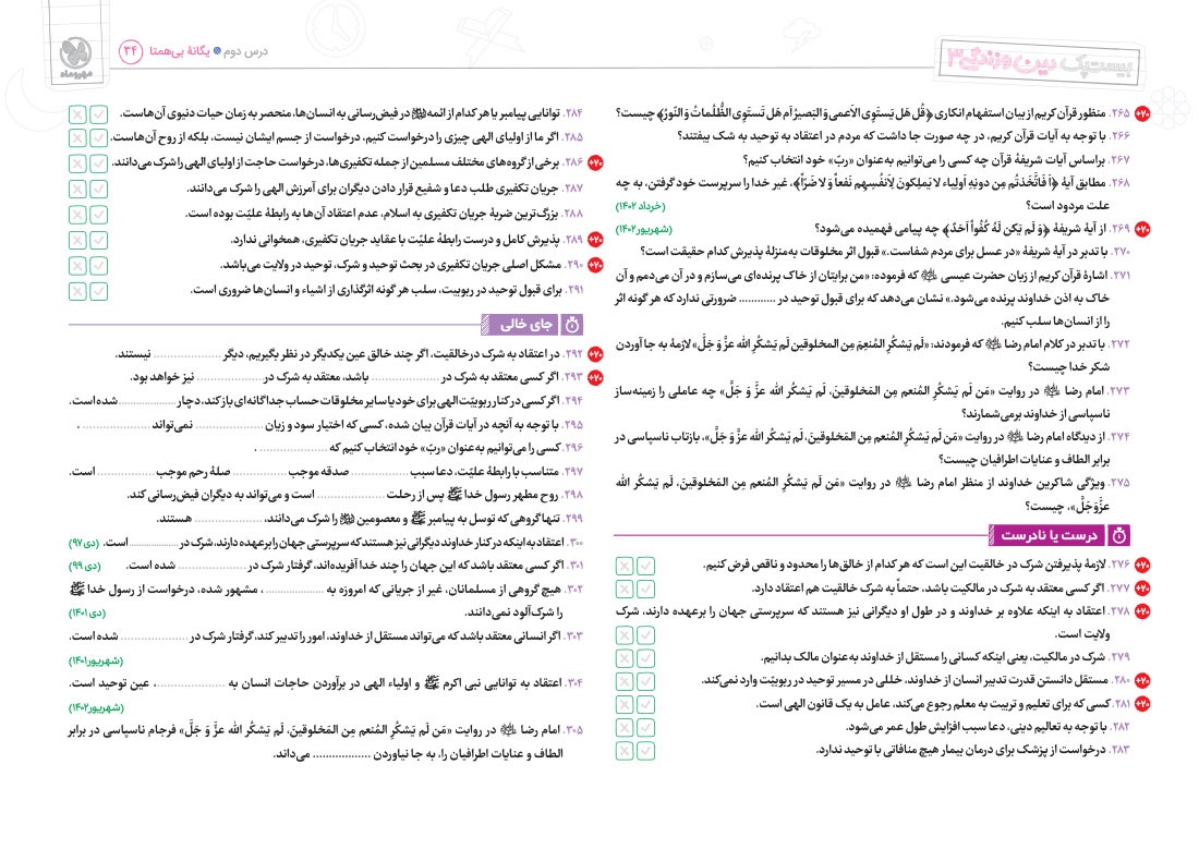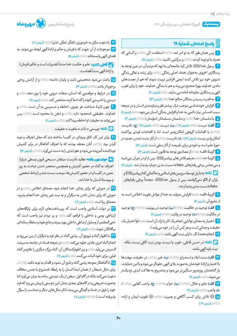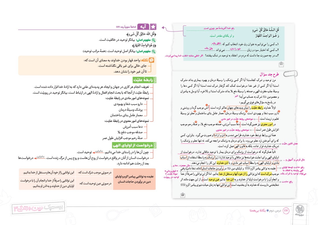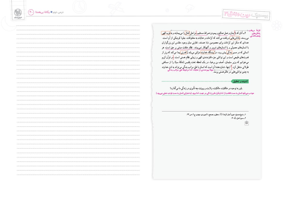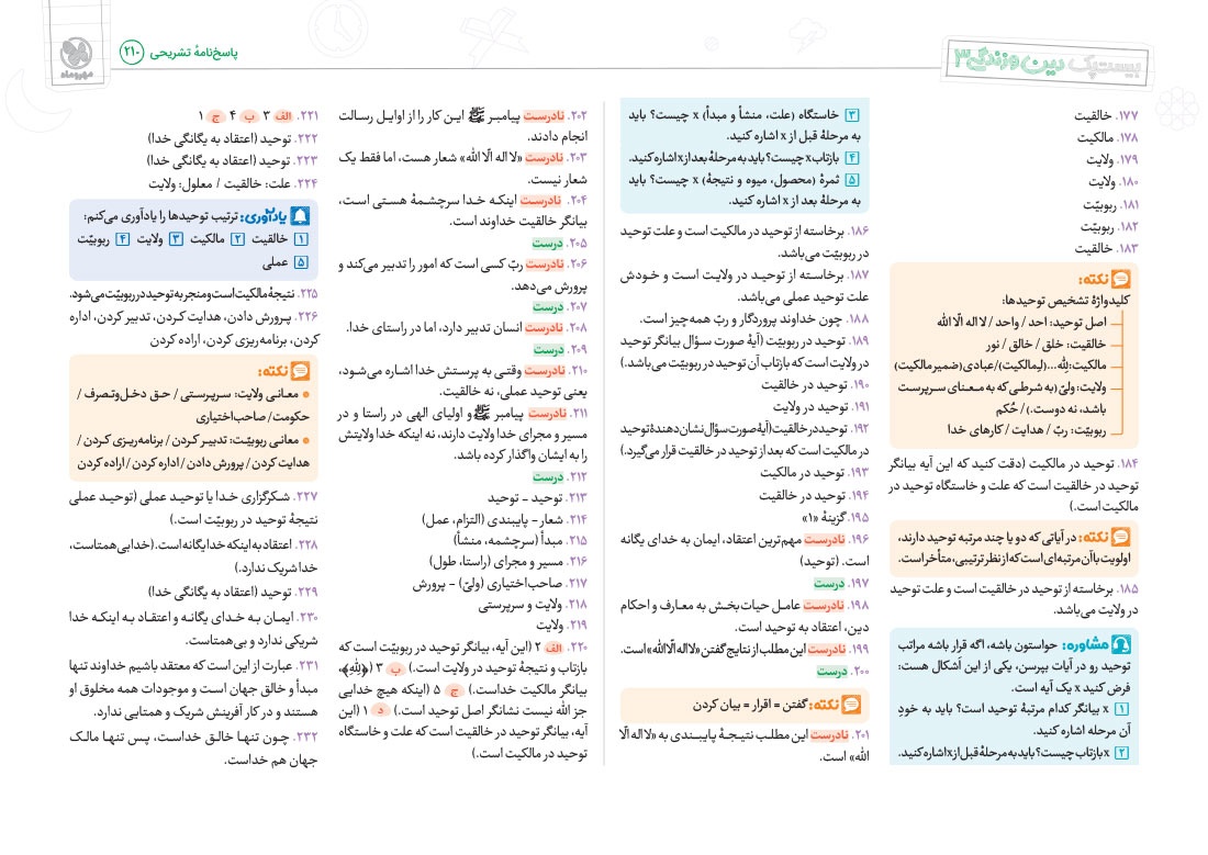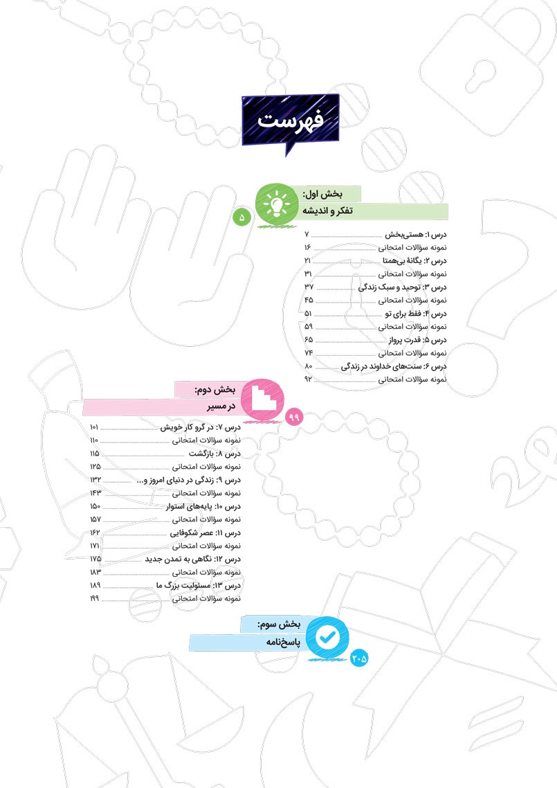 - پوشش نکات تمامی آیات، احادیث و اشعار کتاب درسی
