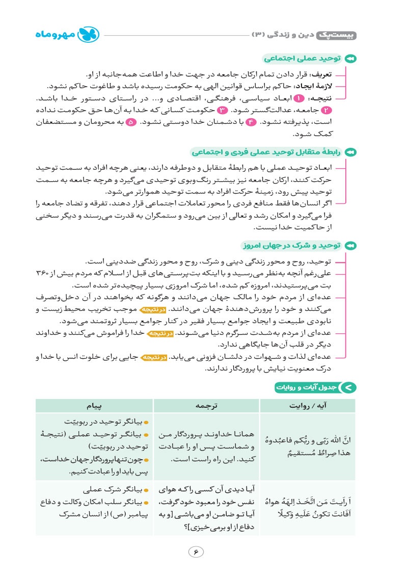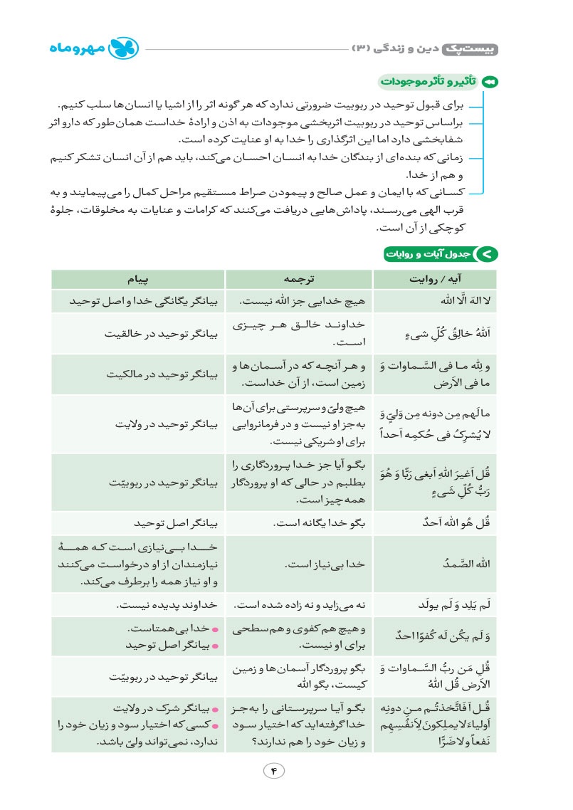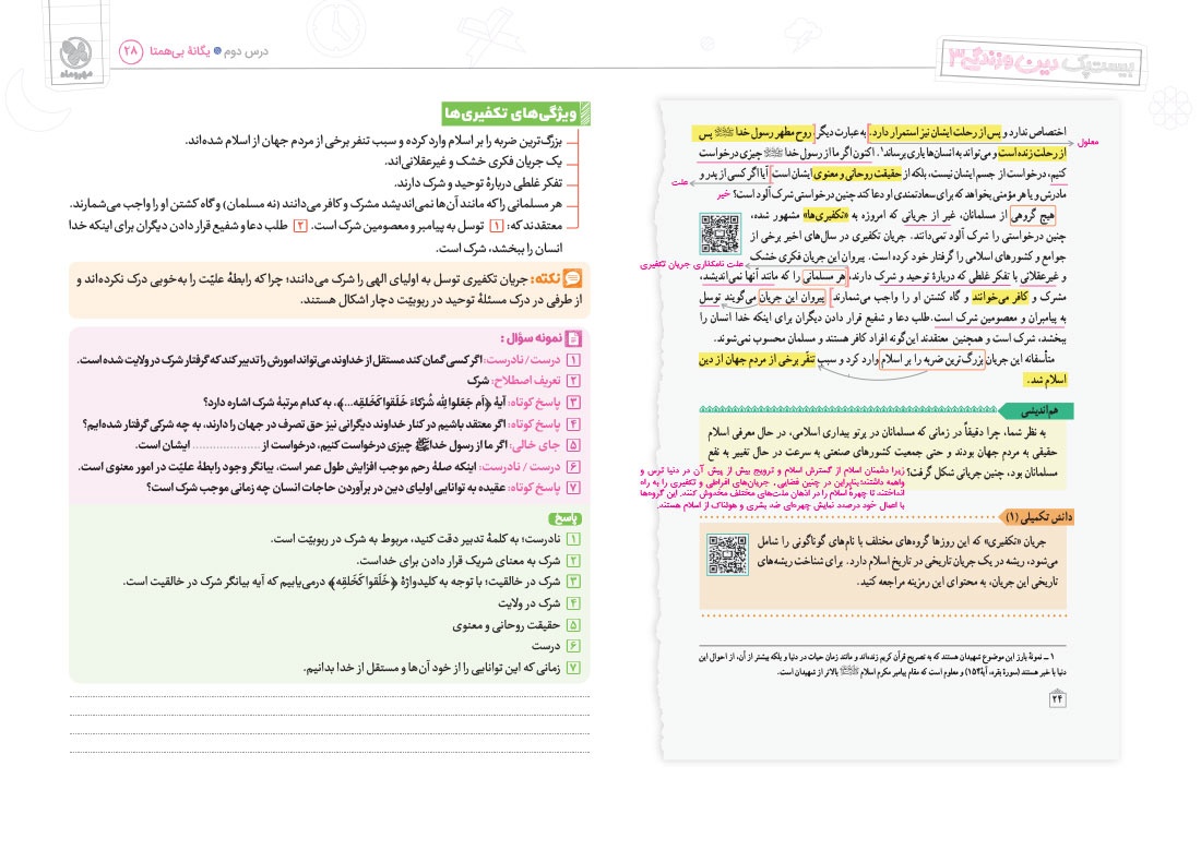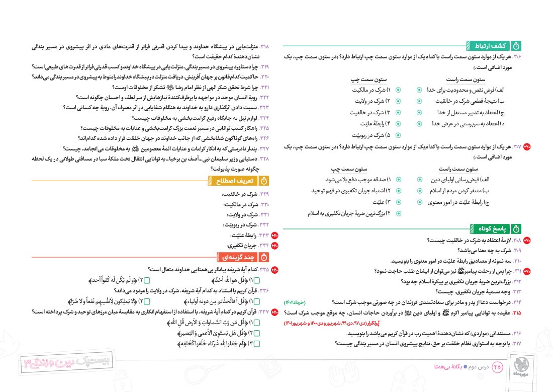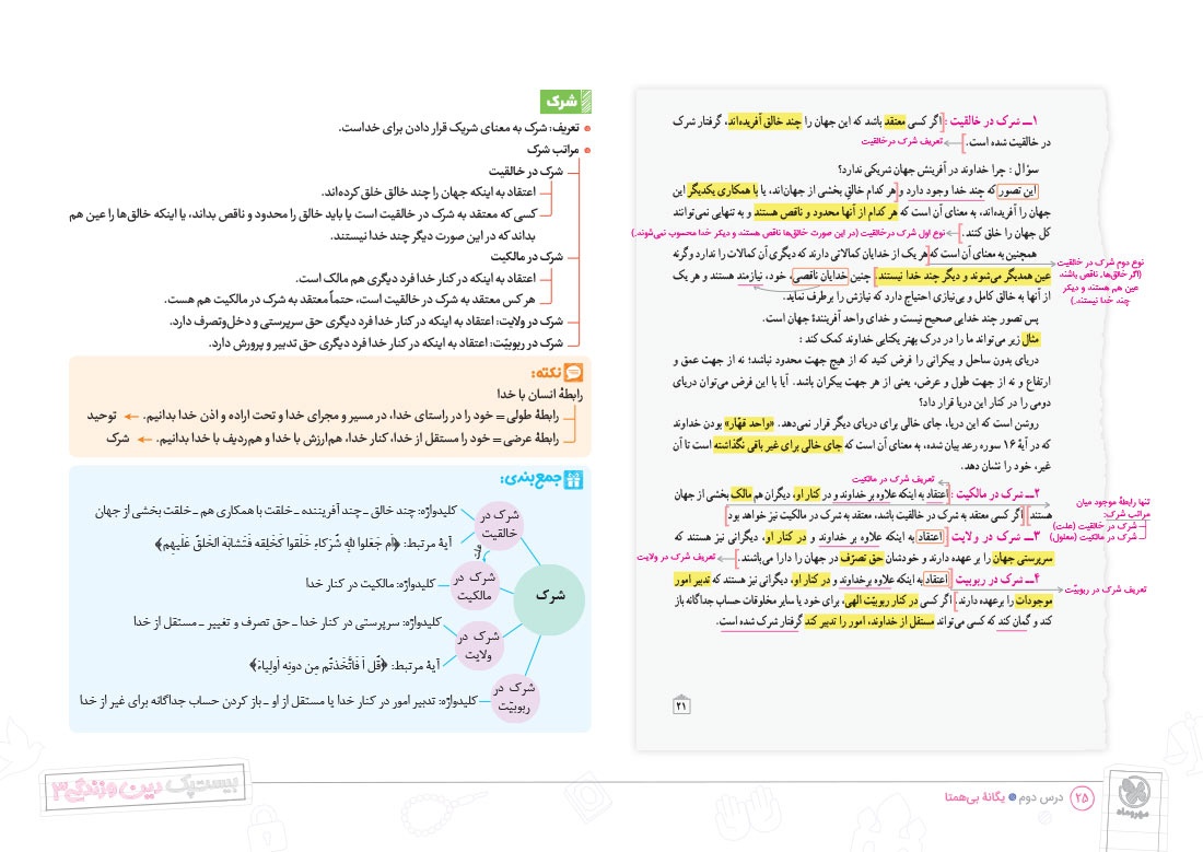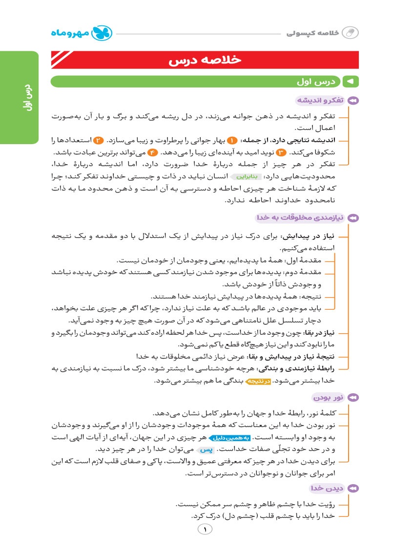 - پوشش نکات تمامی آیات، احادیث و اشعار کتاب درسی