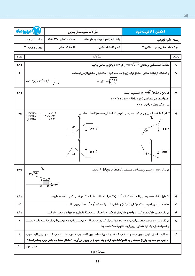 3. امتحان های شبه ساز نهایی + ۲ امتحان نهایی اخیر