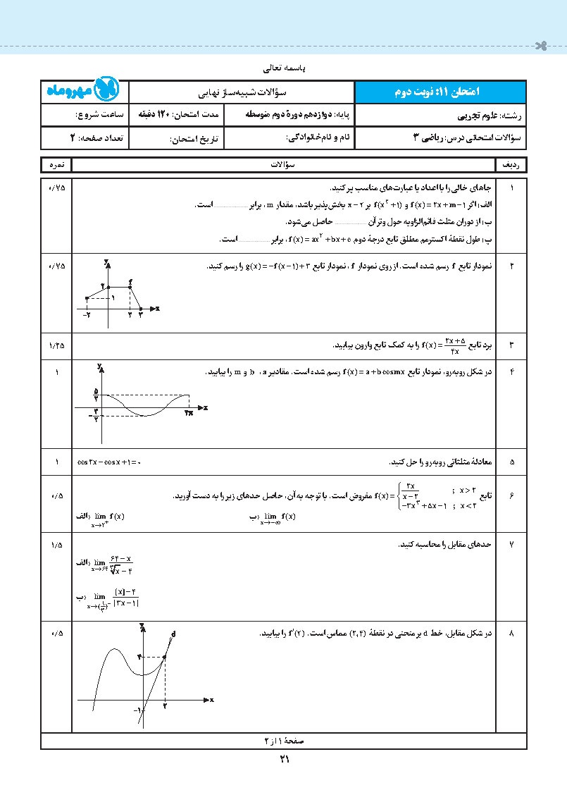 در نهایت با حل سوالات دو آزمون نهایی اخیر به آمادگی کامل خواهید رسید.