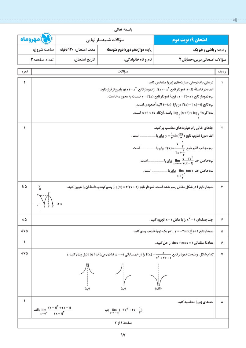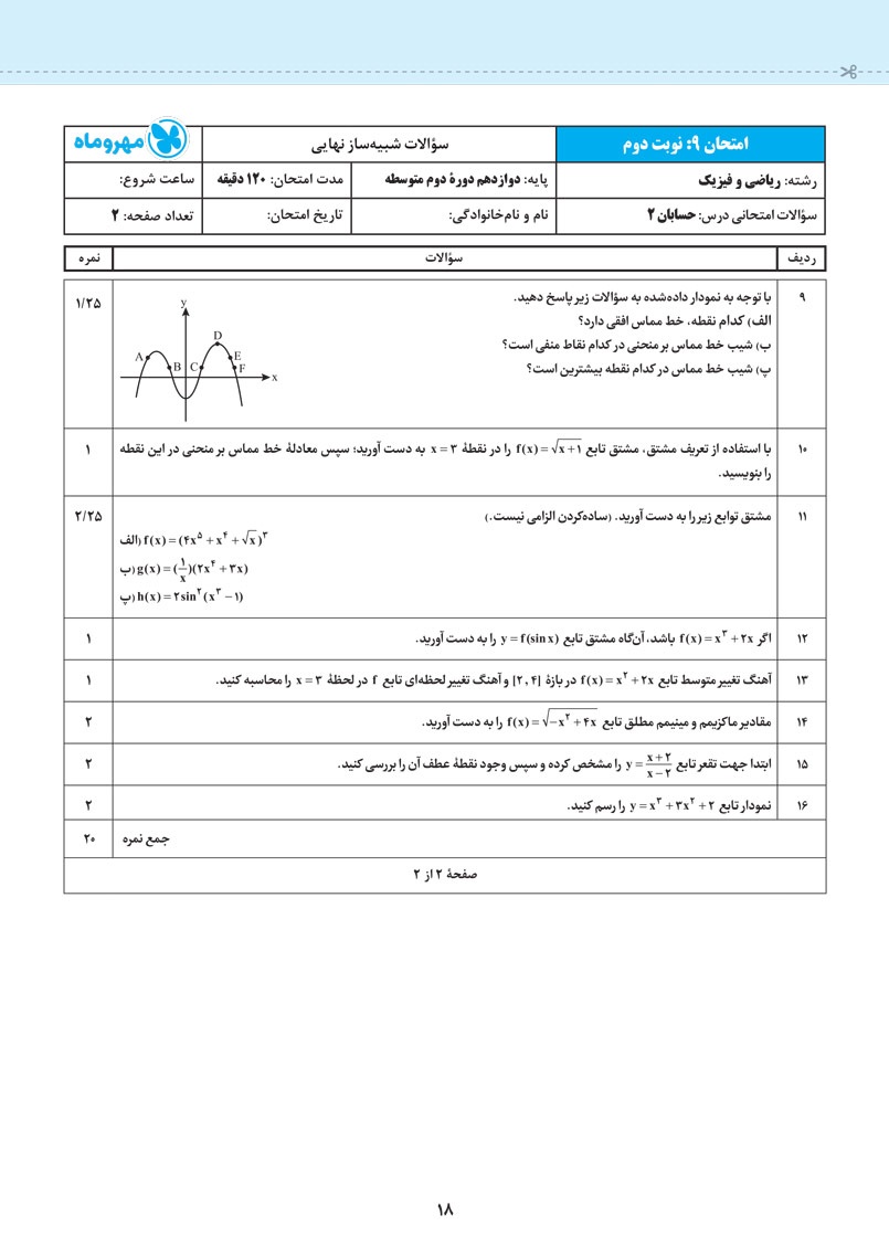 در نهایت با حل سوالات دو آزمون نهایی اخیر به آمادگی کامل خواهید رسید.