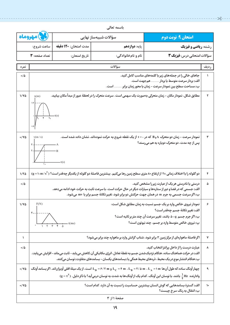 در نهایت با حل سوالات دو آزمون نهایی اخیر به آمادگی کامل خواهید رسید.