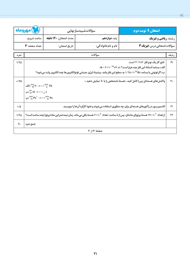 3. امتحان های شبه ساز نهایی + ۲ امتحان نهایی اخیر