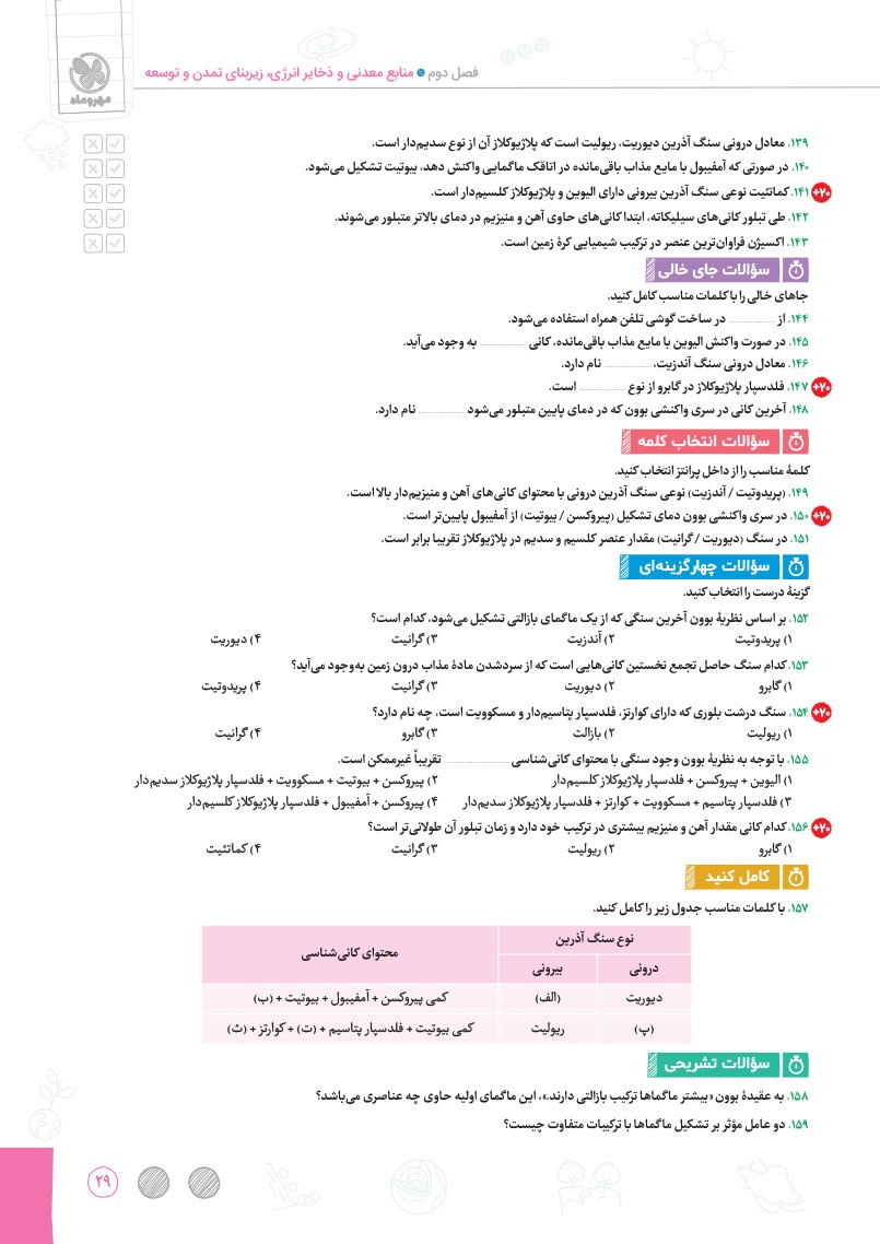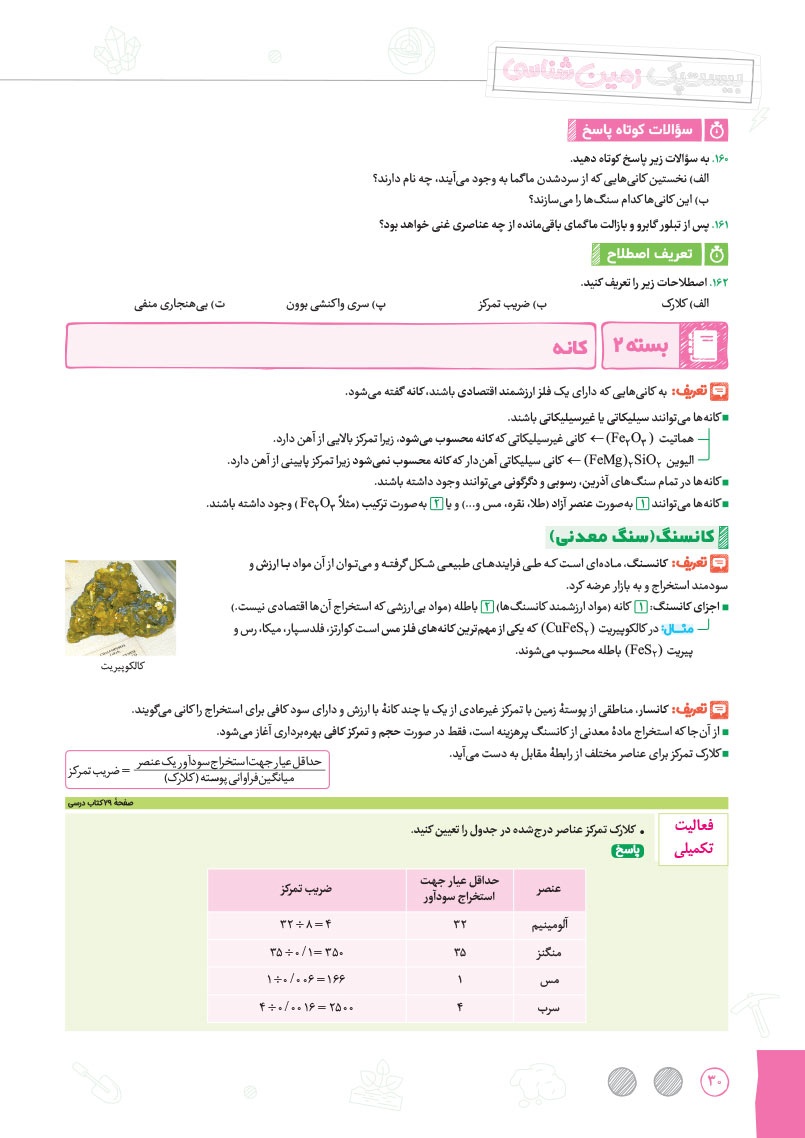 پوشش کامل فعالیت ها، فکر کنیدها، پیوند با ریاضی و سایر پرسش های کتاب درسی و پاسخ به آن ها