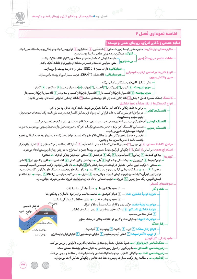 ارائه خلاصه نموداری در انتهای هر فصل برای مرور و جمع بندی مطالب