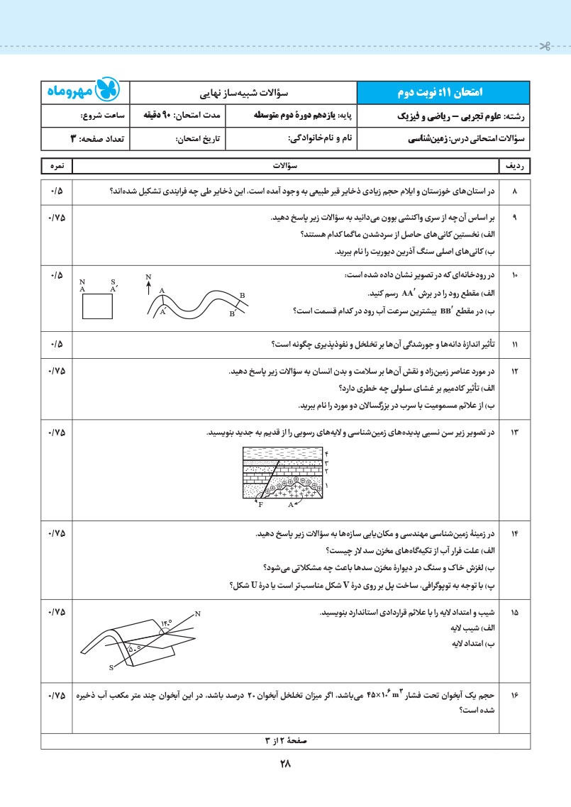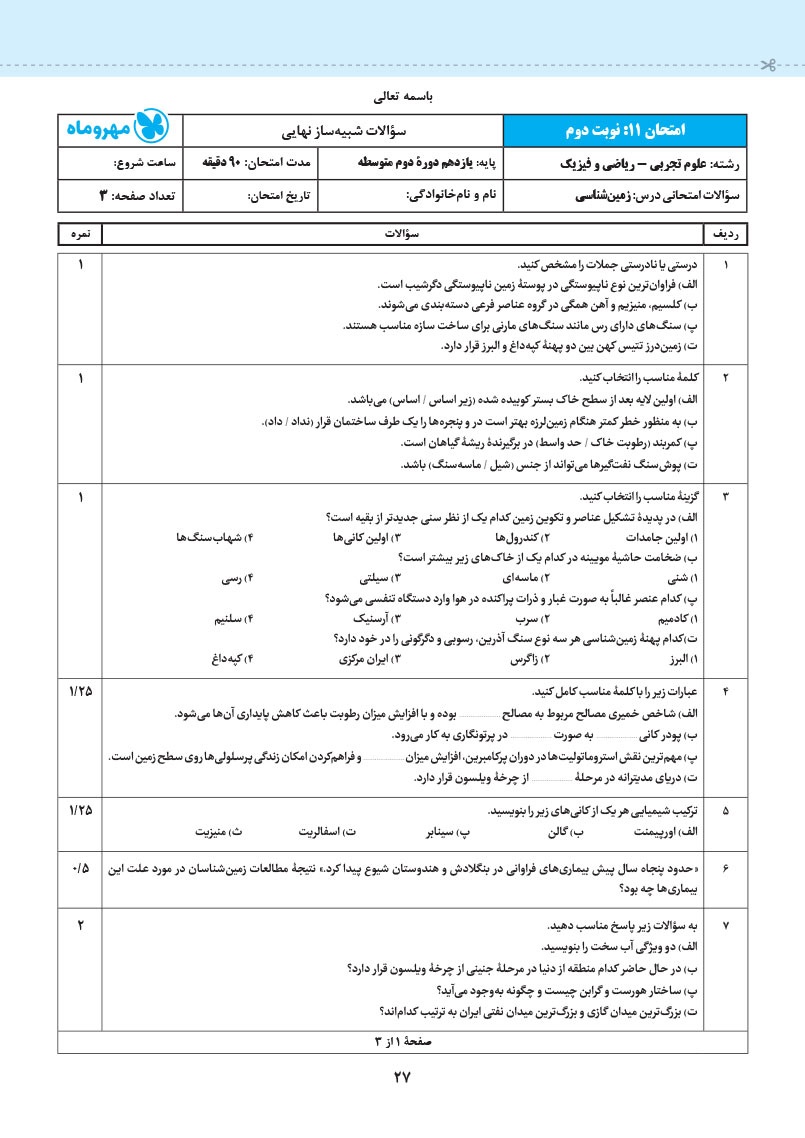 طرح سوالات امتحانی در تیپ بندی های متنوع و مطابق با آخرین امتحان نهایی برگزارشده