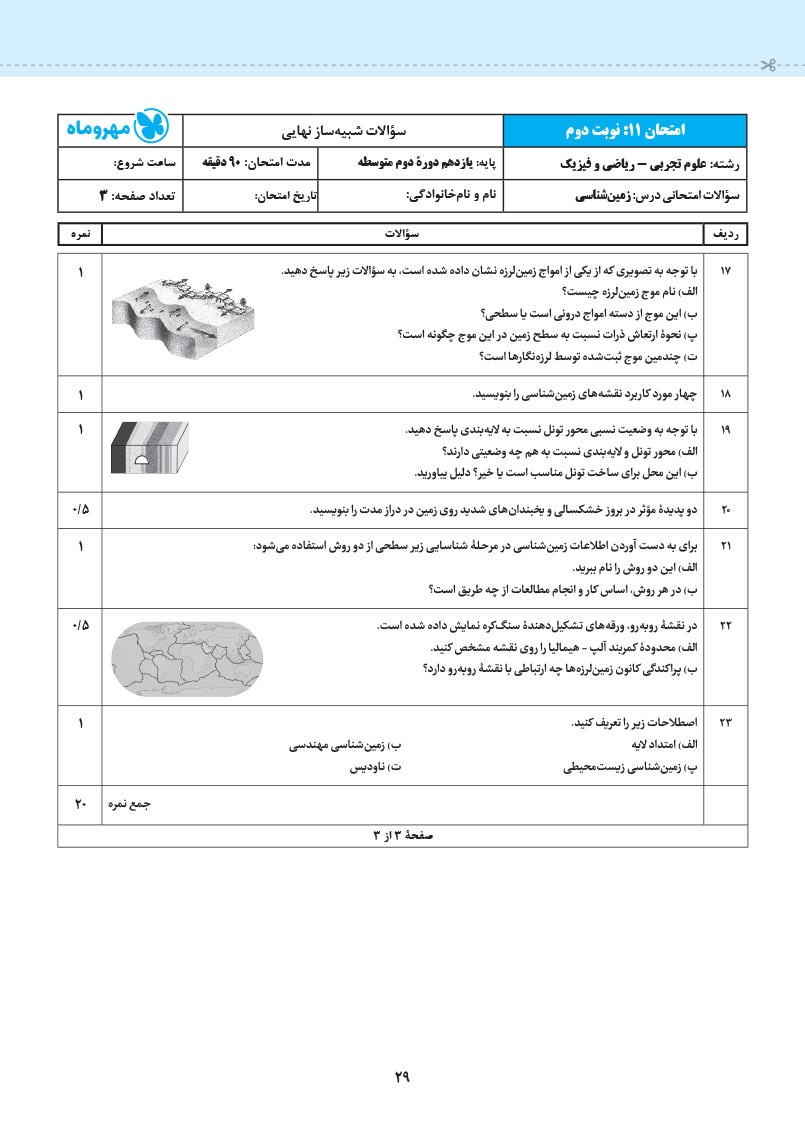 3. امتحان های شبه ساز نهایی + ۲ امتحان نهایی اخیر