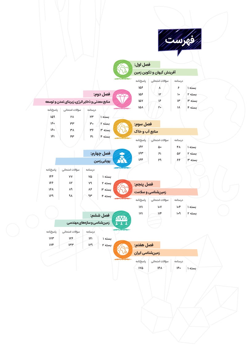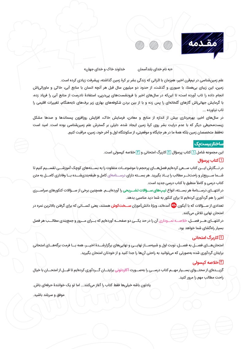 بنابراین پیشنهاد میکنیم پس از مطالعه هر فصل از کتاب پرسوال، امتحان همان فصل را جدا کنید و در شرایط مشابه حوزه امتحانی خودتان را محک بزنید بعد از امتحان نیز با توجه به بارم بندی هر سوال در پاسخ نامه، برگه خود را تصحیح و تحلیل کنید.