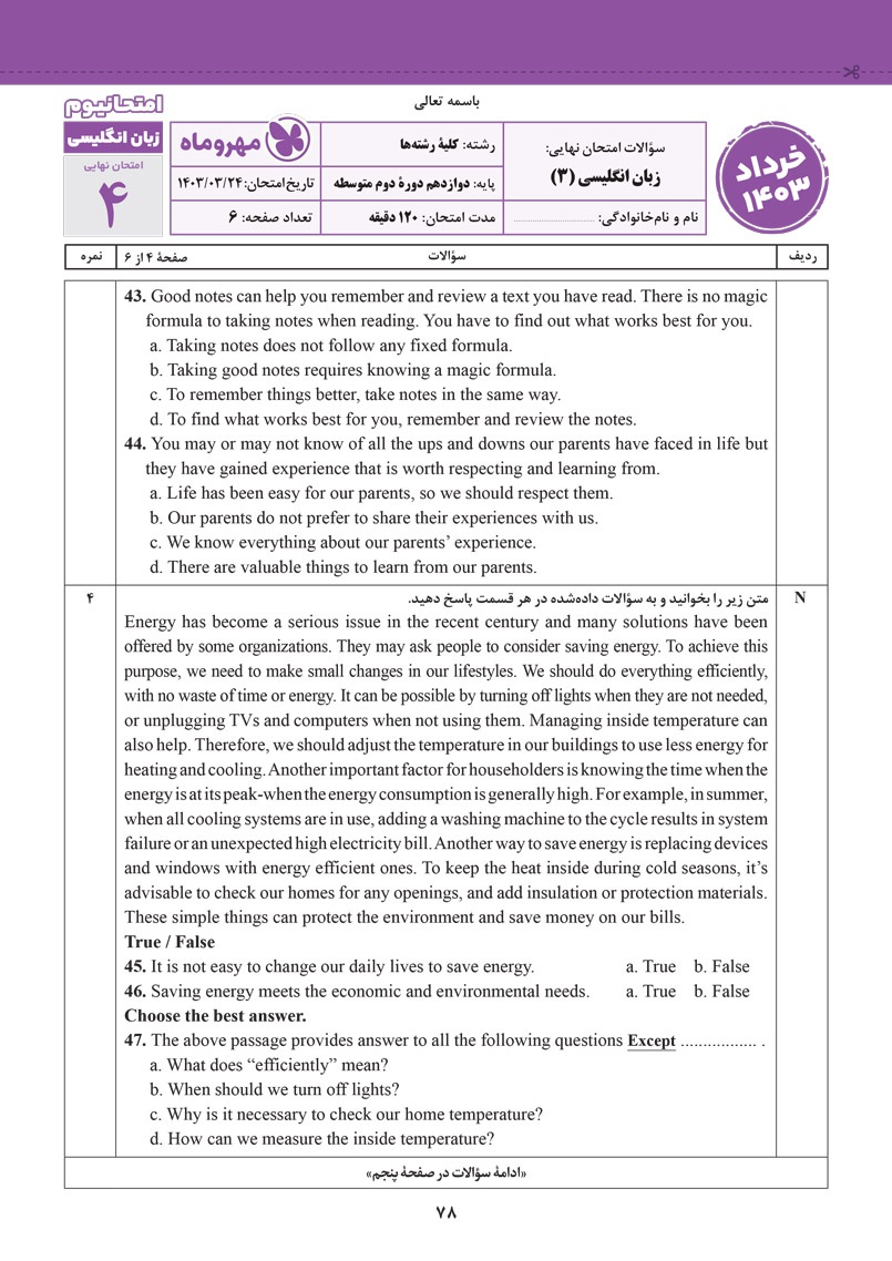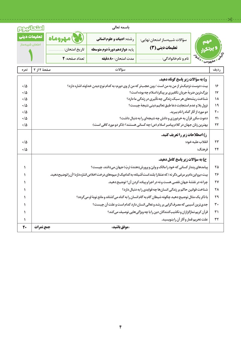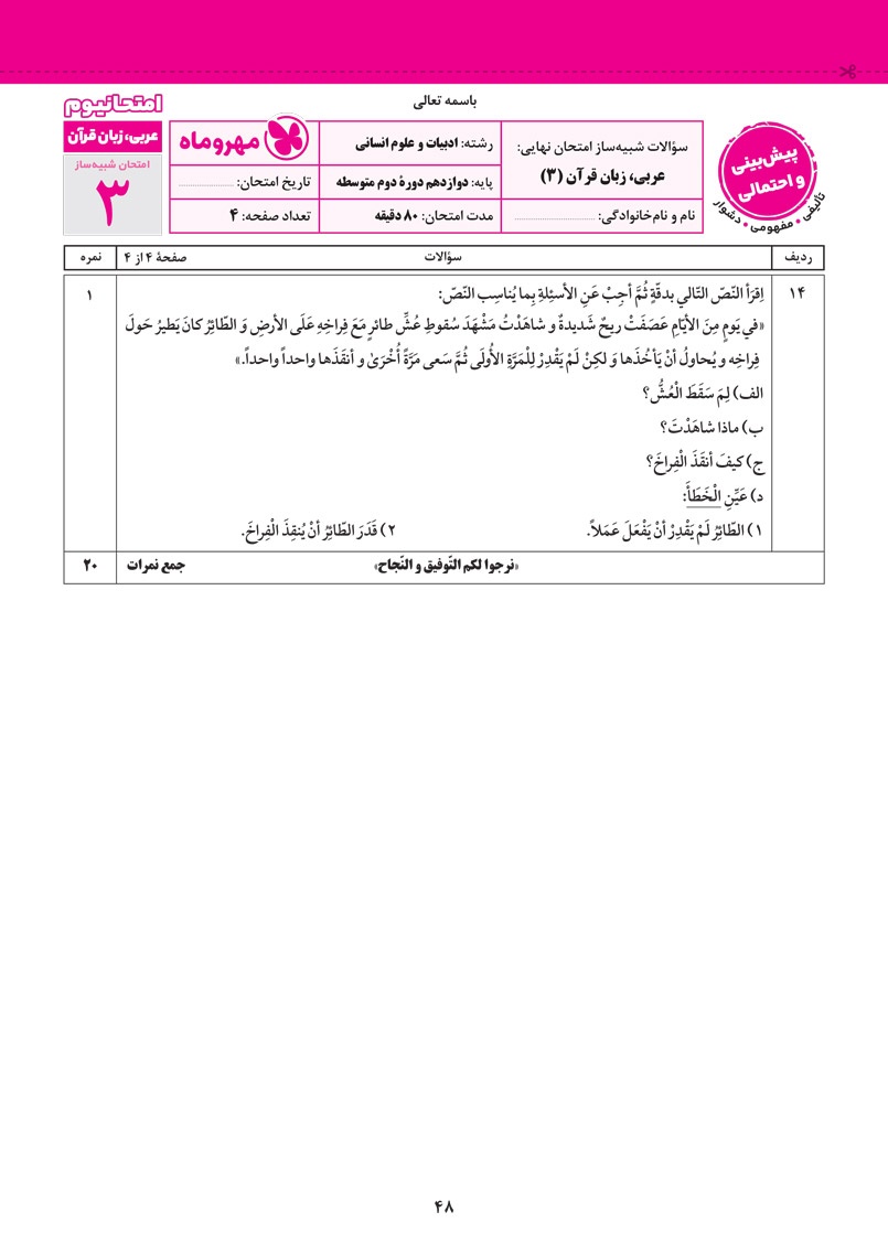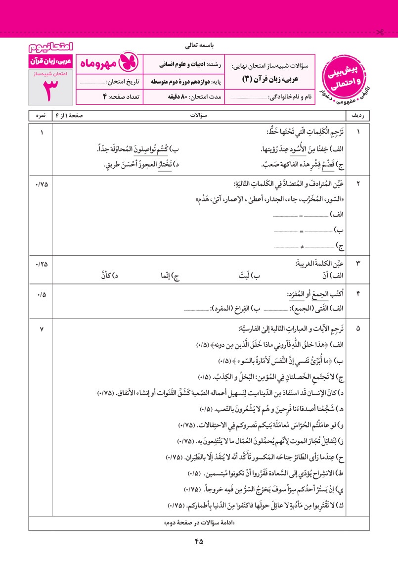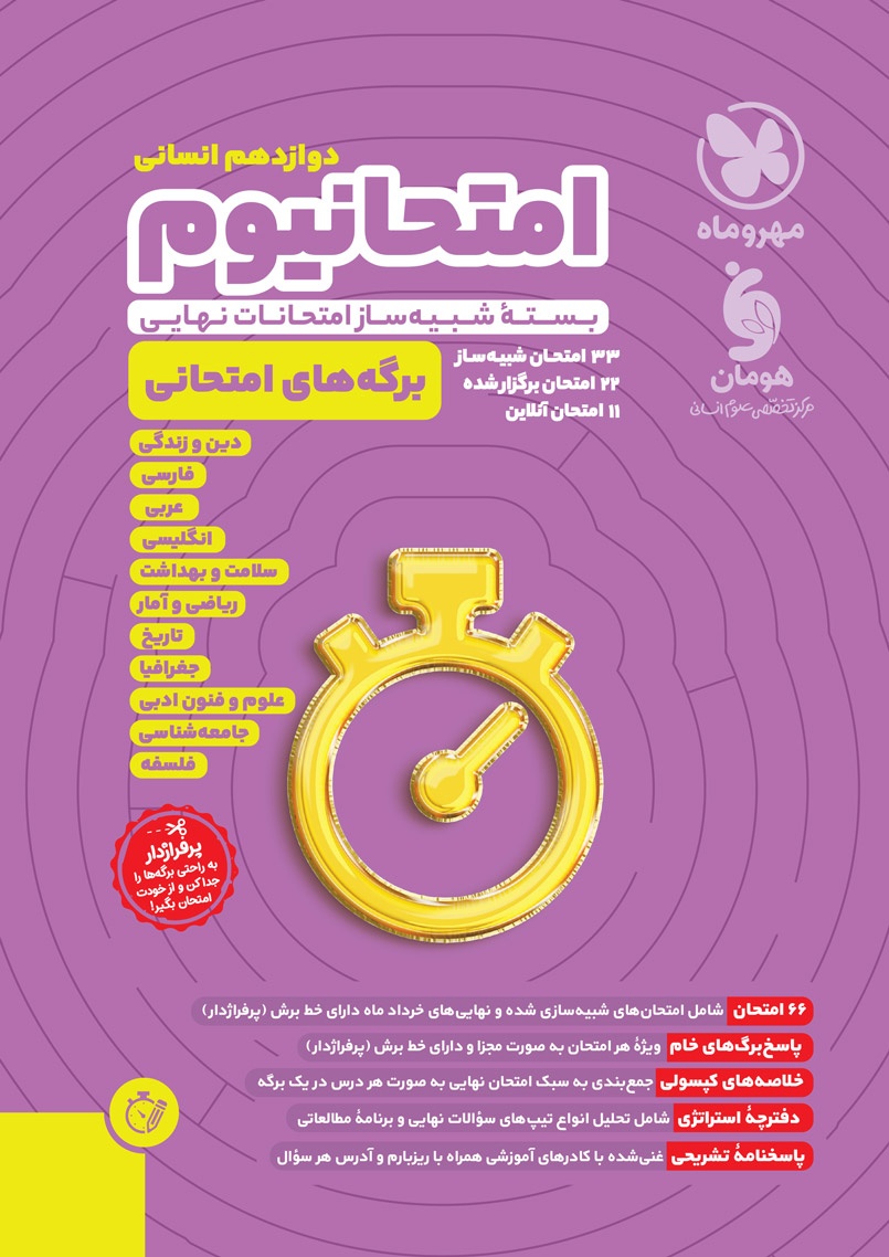 سایر ویژگی ها: دفترچه ی پاسخبرگ، برای شبیه سازی هر چه بیشتر جلسه ی امتحان