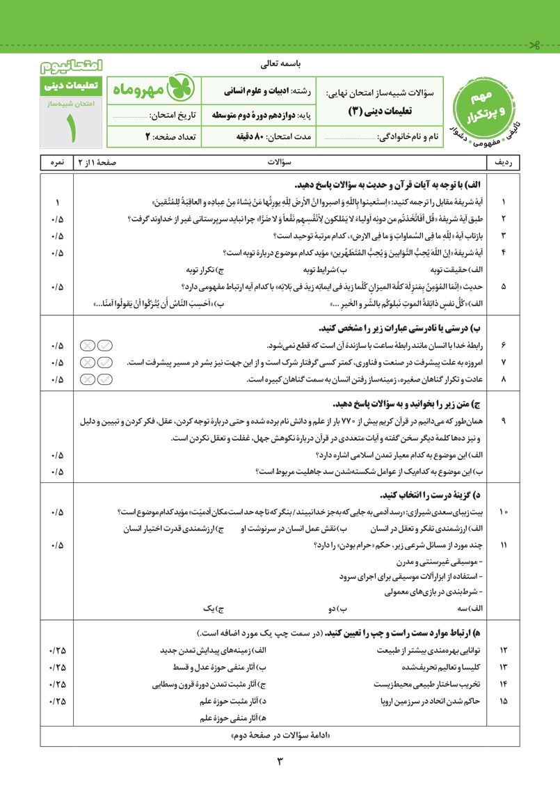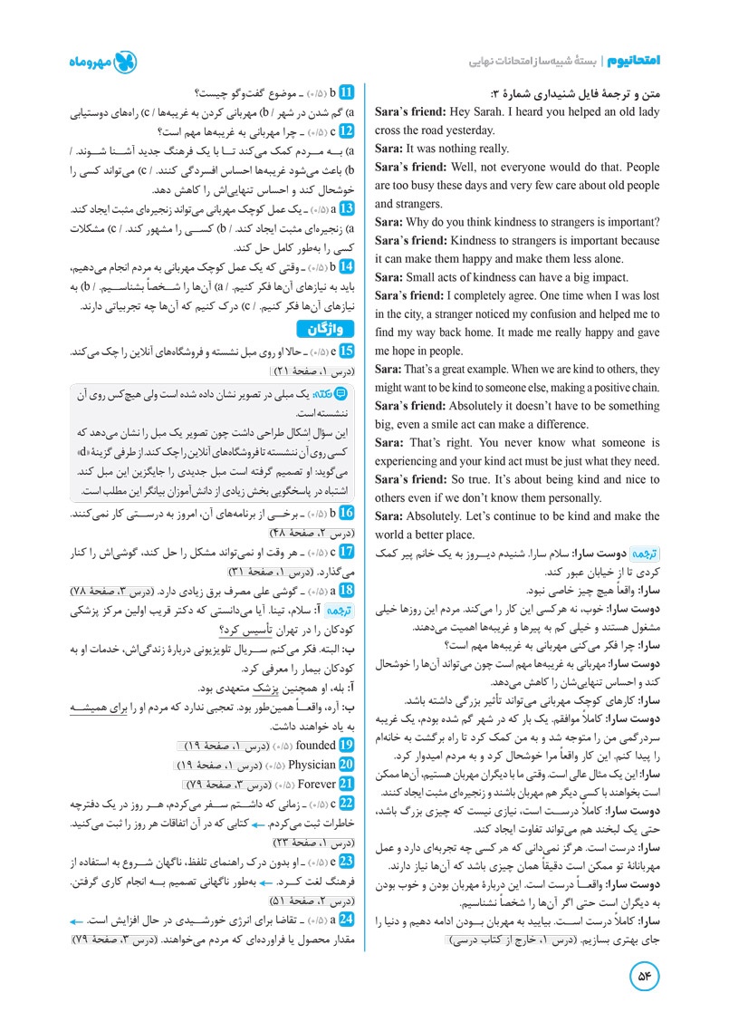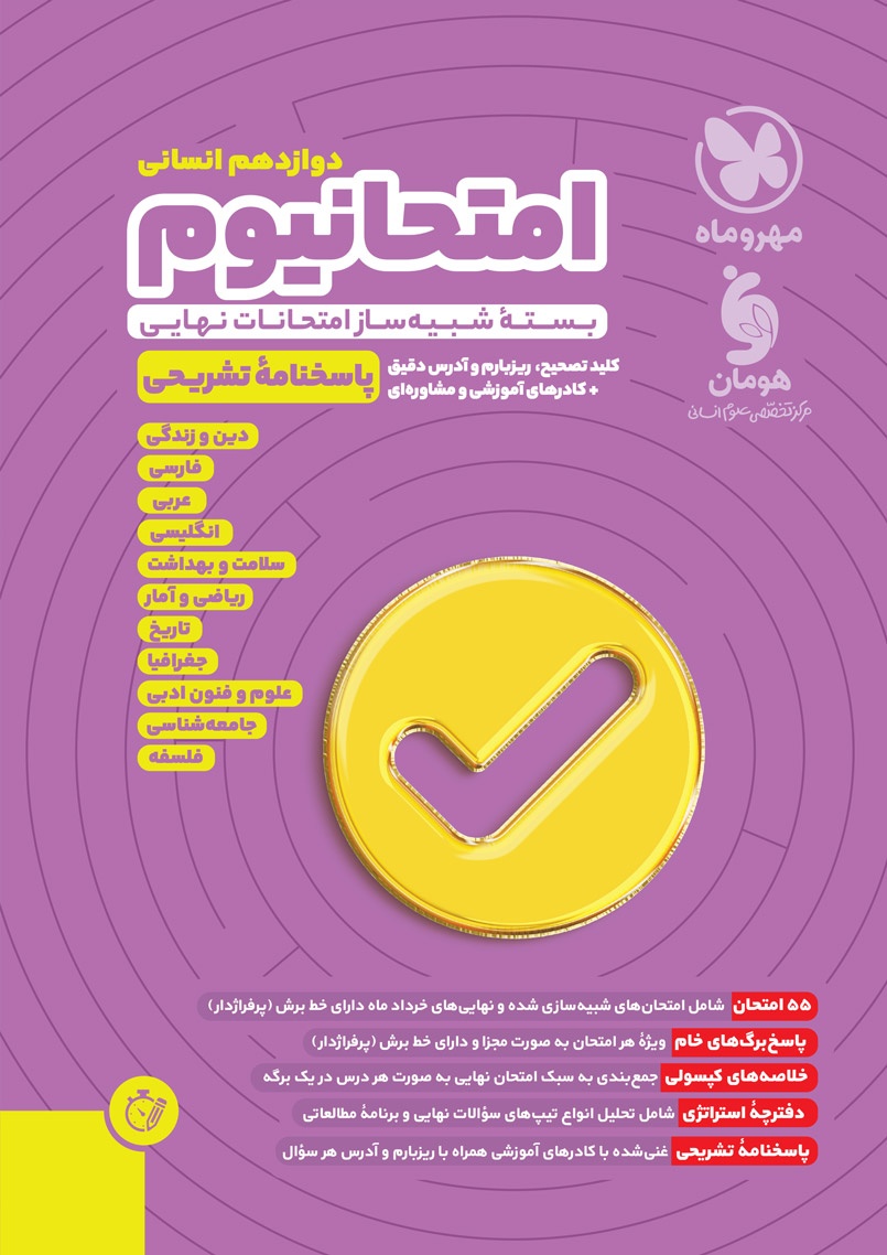 مهم و پر تکرارسوالات این امتحان متشکل از مباحث و مفاهیم پرتکرار امتحانات نهایی ، به شکلی جدید ، برای تسلط به مهمترین مباحث کتاب درسی تالیف شده اند؛ با پاسخگویی به سوالات این امتحان خود را در تمامی مباحثی که تاکنون در امتحانات نهایی پر تکرار بوده اند، محک زده اید.
