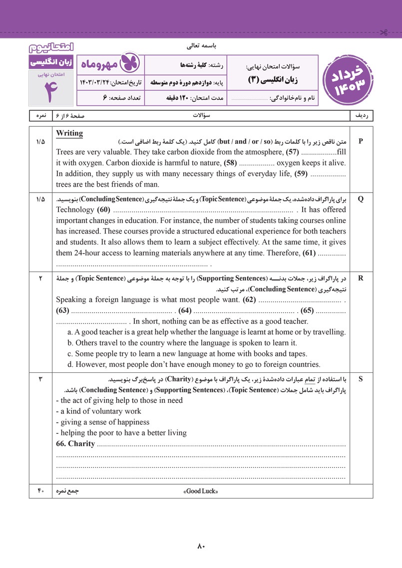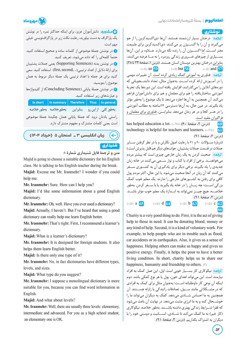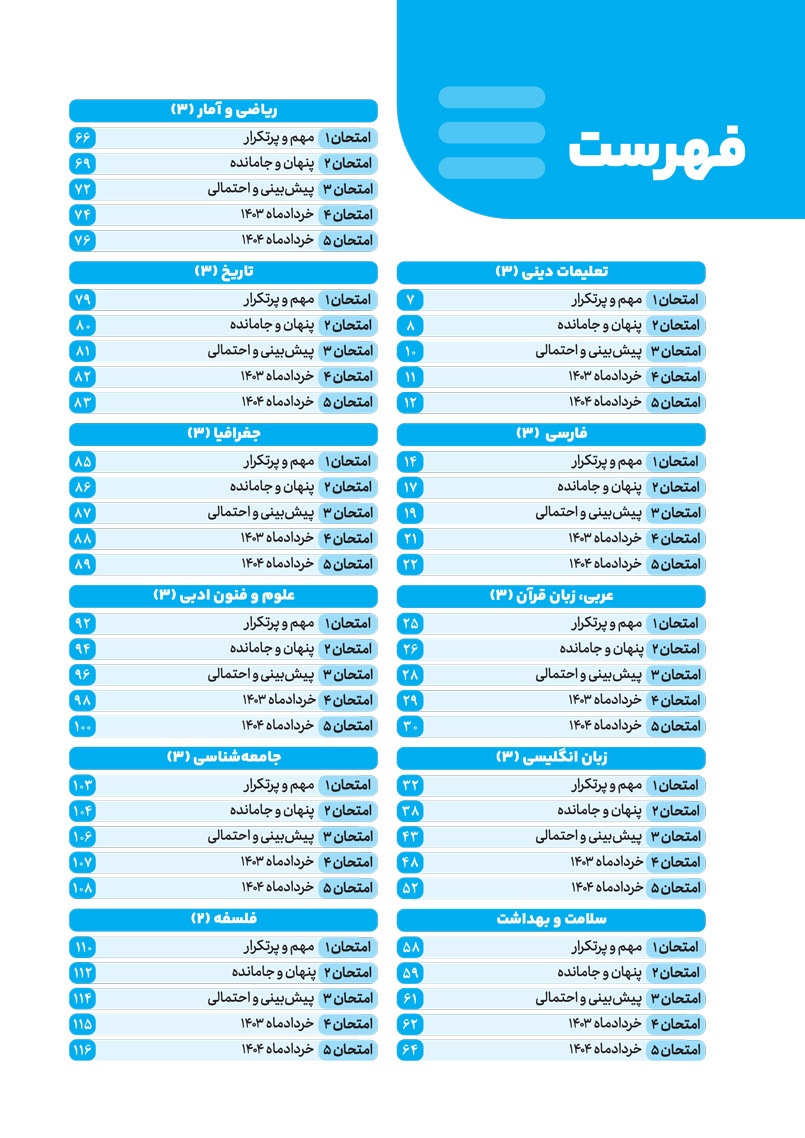 محتویات بسته: دفترچه ی برگه های امتحانی