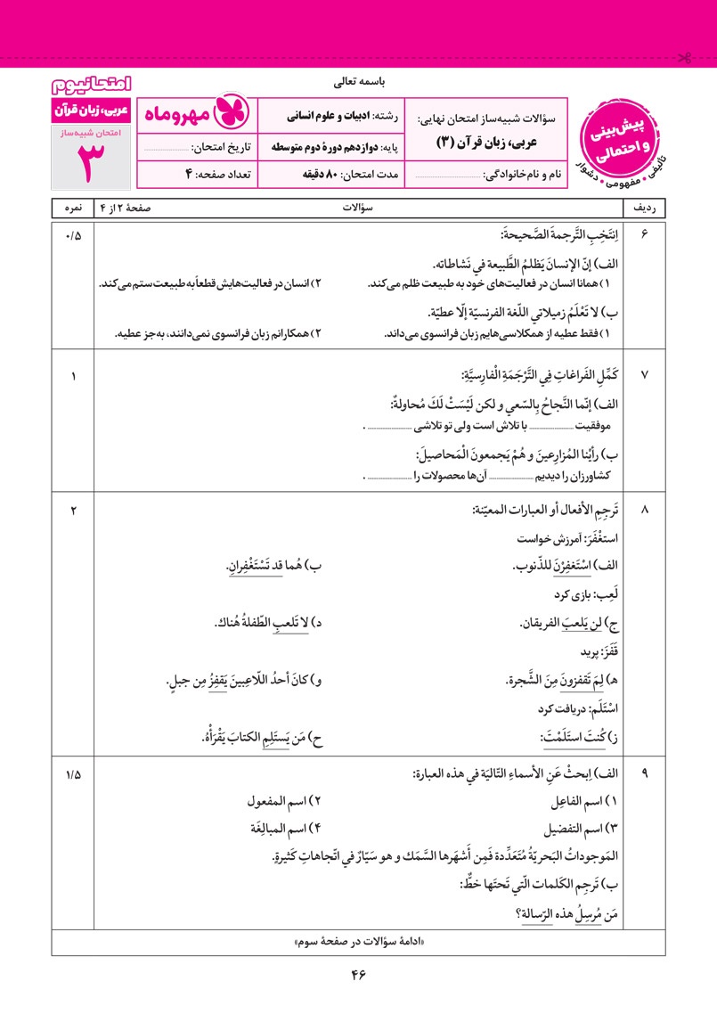 پیش بینی و احتمالیاین امتحان ، بیشترین شباهت را به امتحان نهایی با سبک و سیاق جدید دارد. سوالات این امتحان ، شبیه ساز سوالات امتحان نهایی خرداد اخیر است که با دید مفهومی تر و چالشی تری طراحی شده اند.